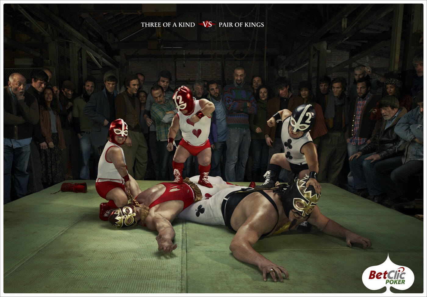 This professional campaign titled 'Three of a kind vs Pair of Kings' was published in France in March, 2010. It was created for the brand: Betclic, by ad agency: La Chose. This Print medium campaign is related to the Gaming industry and contains 2 media assets. It was submitted over 15 years ago.