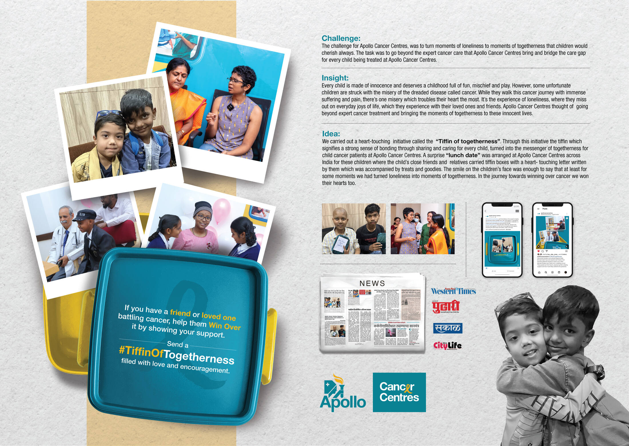 #TiffinOfTogetherness campaign specializes in pediatric cancer patients, using the power of shared meals to bring them together and provide them with comfort and companionship during a difficult time. By providing personalized tiffin boxes and arranging surprise "lunch dates" for these children at hospitals like Apollo, the campaign creates a warm and inviting environment where the children can connect with their loved ones and support each other.