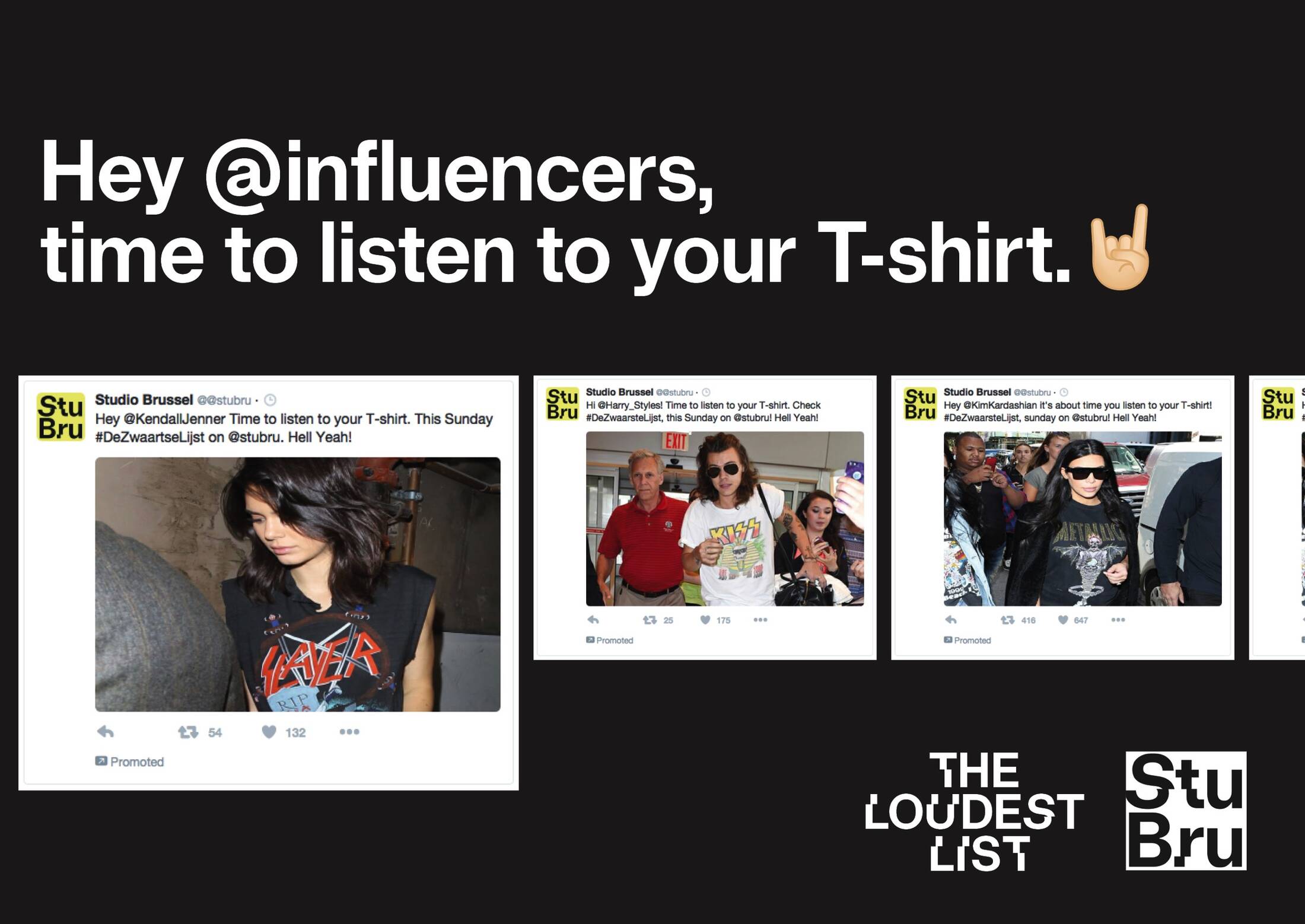 Over the past few years T-shirts of iconic metal bands such as AC/DC, Iron Maiden and Mötorhead have become popular fashion items for anyone but metal heads. Belgian radio station, Studio Brussel decided to play on this fact to draw a bigger crowd to its annual metal special called, The Loudest List (De Zwaarste Lijst in Dutch). The call to action of the campaign is simple: time to listen to your T-shirt.