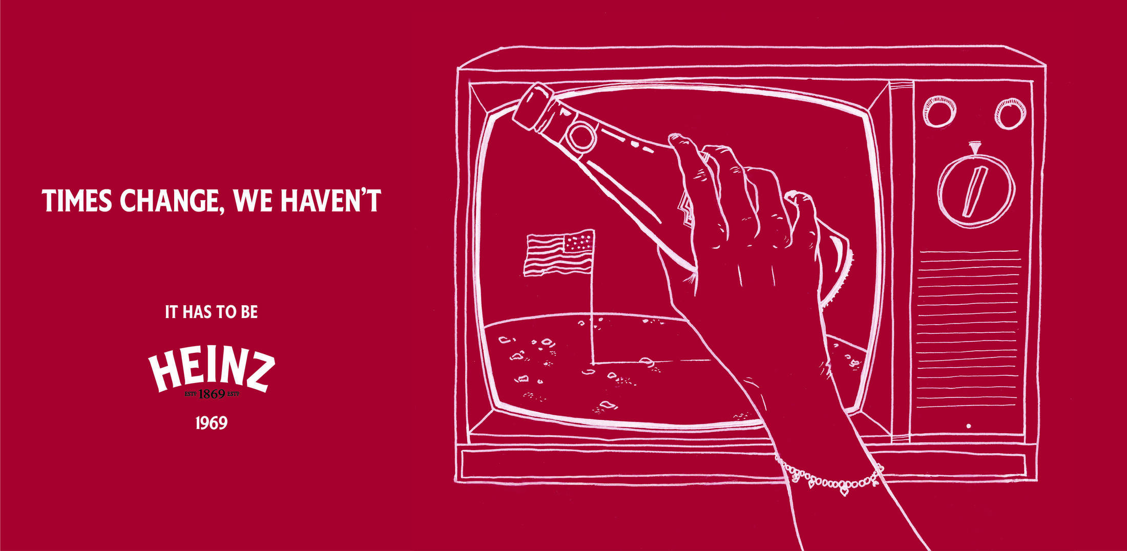 Celebrating a 150 years of “It Has To be Heinz." The strategy behind this campaign was to make the target audience re-discover their love for the brand. From this came the big idea “Times Change, We haven't." It is shown through highlighting memorable moments in time where Heinz has still remained being the same quality product that it has always been.