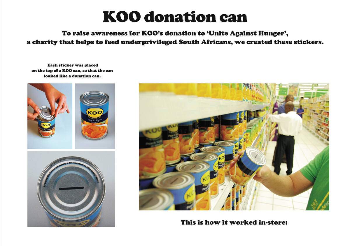 The campaign was created to raise awareness for KOO's donation to 'Unite Against Hunger', a charity that helps to feed underprivileged South Africans.