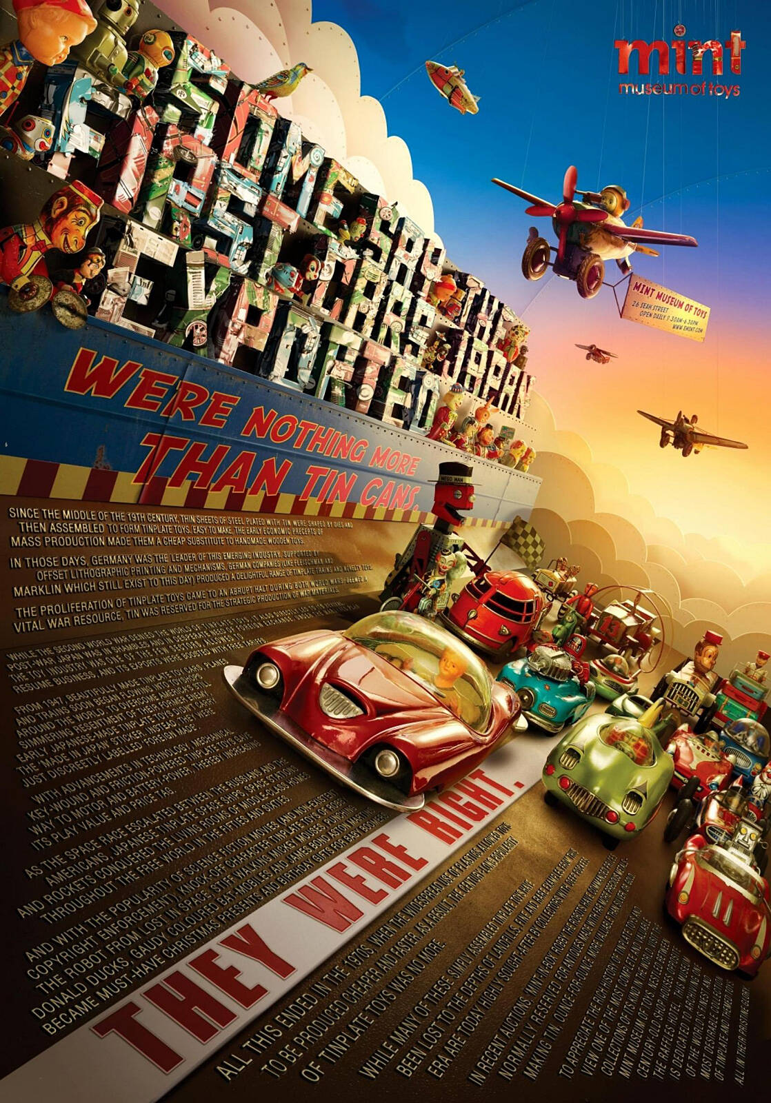 This professional campaign titled 'Tin Toys, Dolls' was published in Singapore in June, 2010. It was created for the brand: Mint Museum of Toys, by ad agency: Y&R. This Print medium campaign is related to the Gaming industry and contains 2 media assets. It was submitted over 15 years ago.