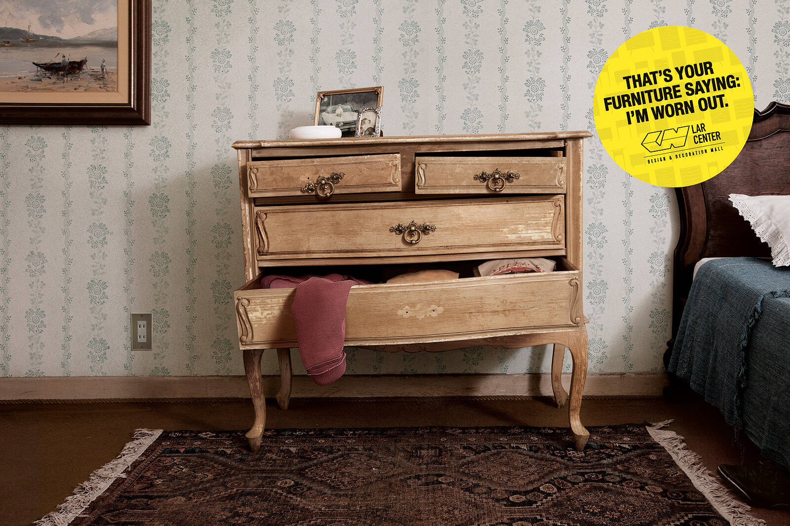 This professional campaign titled 'Tired Furniture' was published in Brazil in April, 2011. It was created for the brand: Lar Center, by ad agency: Moma. This Print medium campaign is related to the Retail Services industry and contains 3 media assets. It was submitted over 14 years ago.