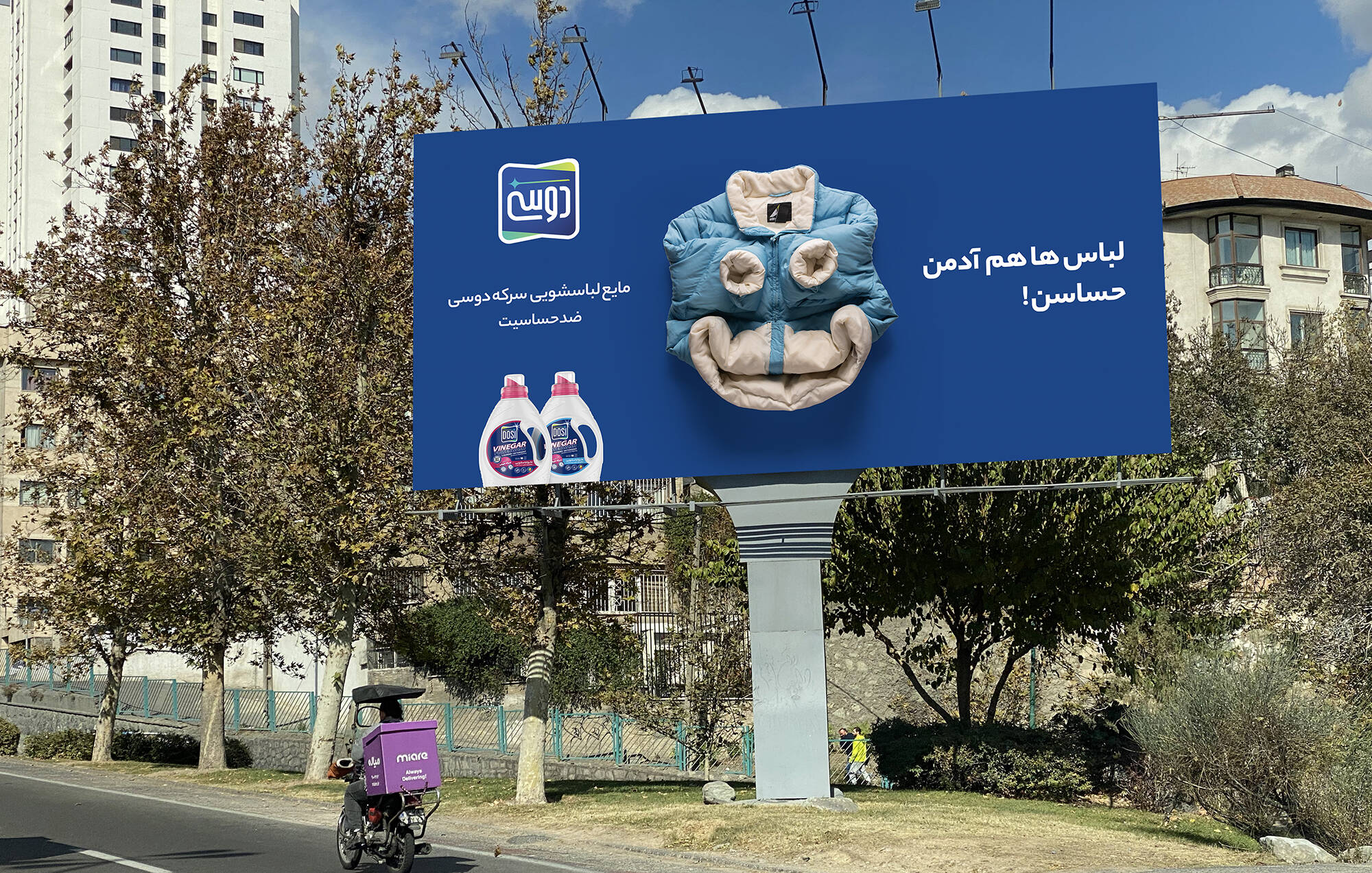 This professional campaign titled 'Title: Clothes are Human too!' was published in Iran in January, 2024. It was created for the brand: Dosi, by ad agency: BOOM Marcom. This Film and OOH Outdoor media campaign is related to the Household Products industry and contains 5 media assets. It was submitted about 1 month ago by BOOM Marcom.