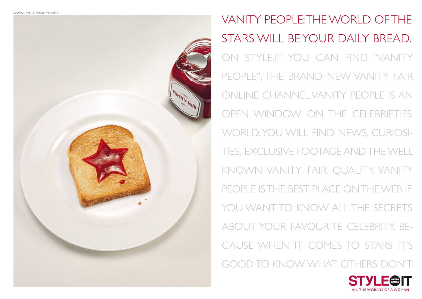 This professional campaign titled 'Toast' was published in Italy in February, 2010. It was created for the brand: Vanity People, by ad agency: Ambito5. This Print medium campaign is related to the Media industry and contains 1 media asset. It was submitted over 15 years ago.