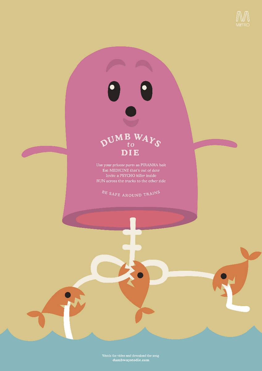 This professional campaign titled 'Toast, Snake, Piranha, Moose, Kidney, Helmet, Hair, Bear' was published in Australia in June, 2013. It was created for the brand: Metro Trains, by ad agency: McCann. This OOH Outdoor medium campaign is related to the Transport industry and contains 8 media assets. It was submitted over 12 years ago.