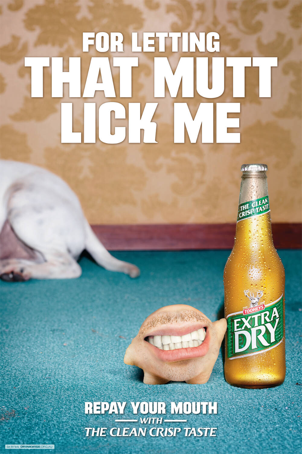 This professional campaign titled 'Toes, Dog, Mouth off' was published in Australia in November, 2013. It was created for the brand: Tooheys, by ad agency: BMF. This OOH Outdoor medium campaign is related to the Alcoholic Drinks industry and contains 3 media assets. It was submitted about 12 years ago.
