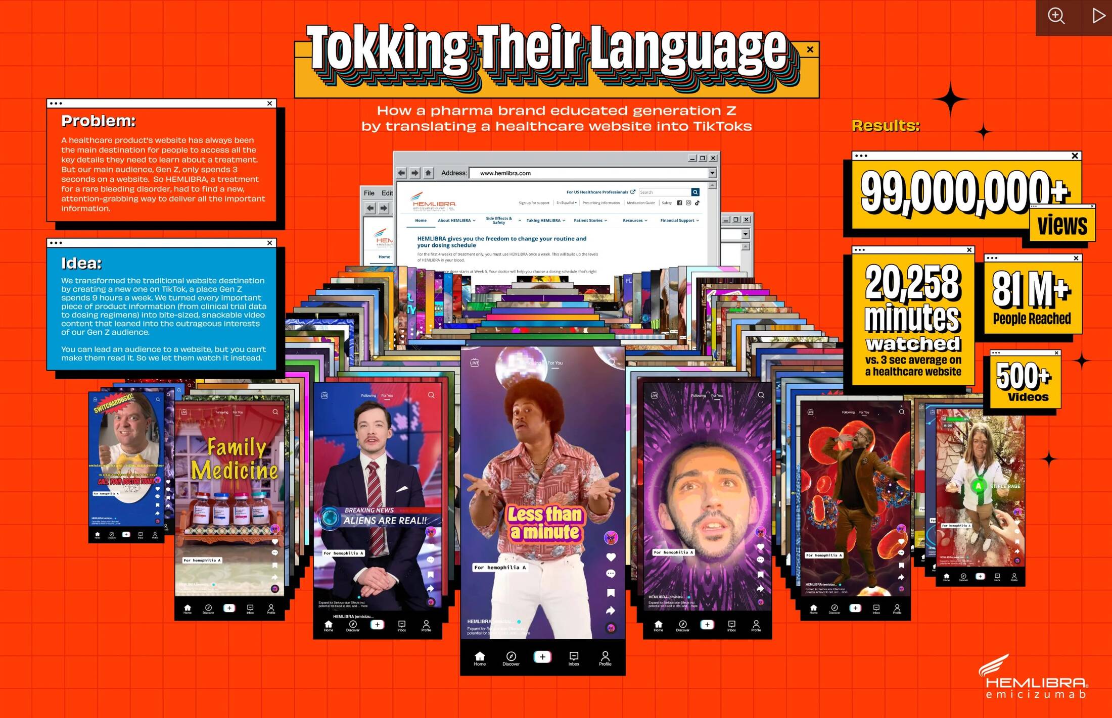 This professional campaign titled 'Tokking Their Language' was published in United States in January, 2026. It was created for the brand: Hemlibra, by ad agency: 21GRAMS. This Integrated medium campaign is related to the Health industry and contains 4 media assets. It was submitted 1 day ago.