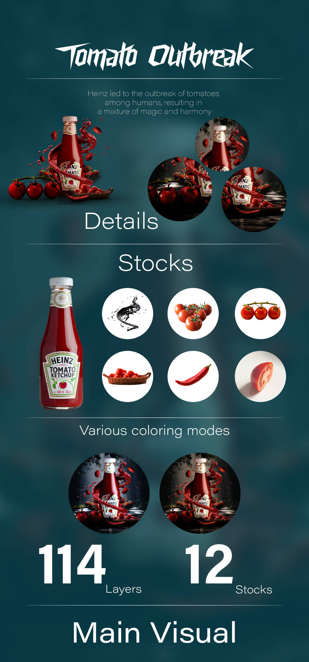 This student campaign titled 'Tomato Outbreak' was published in Egypt in July, 2022. It was created for the brand: Heinz, by ad school: Andrew Ramses Art work. This Design, Digital, and Print media campaign is related to the Food industry and contains 3 media assets. It was submitted over 3 years ago by Graphic designer: Andrew Ramses of Andrew Ramses Art work.