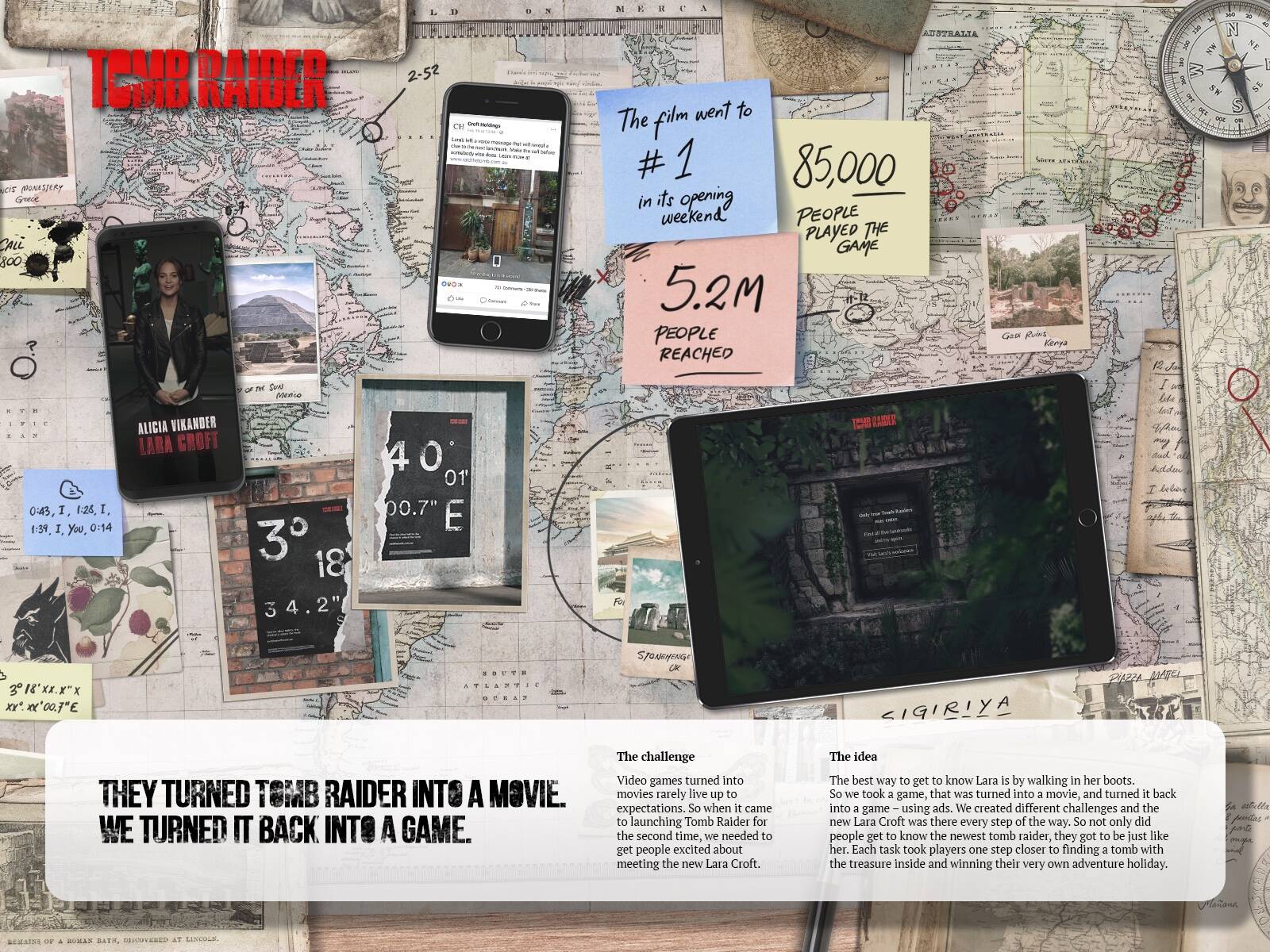 This professional campaign titled 'Tomb Raider' was published in Australia in February, 2018. It was created for the brand: Tomb Raider, by ad agency: Isobar. This Digital medium campaign is related to the Movies industry and contains 2 media assets. It was submitted over 6 years ago.