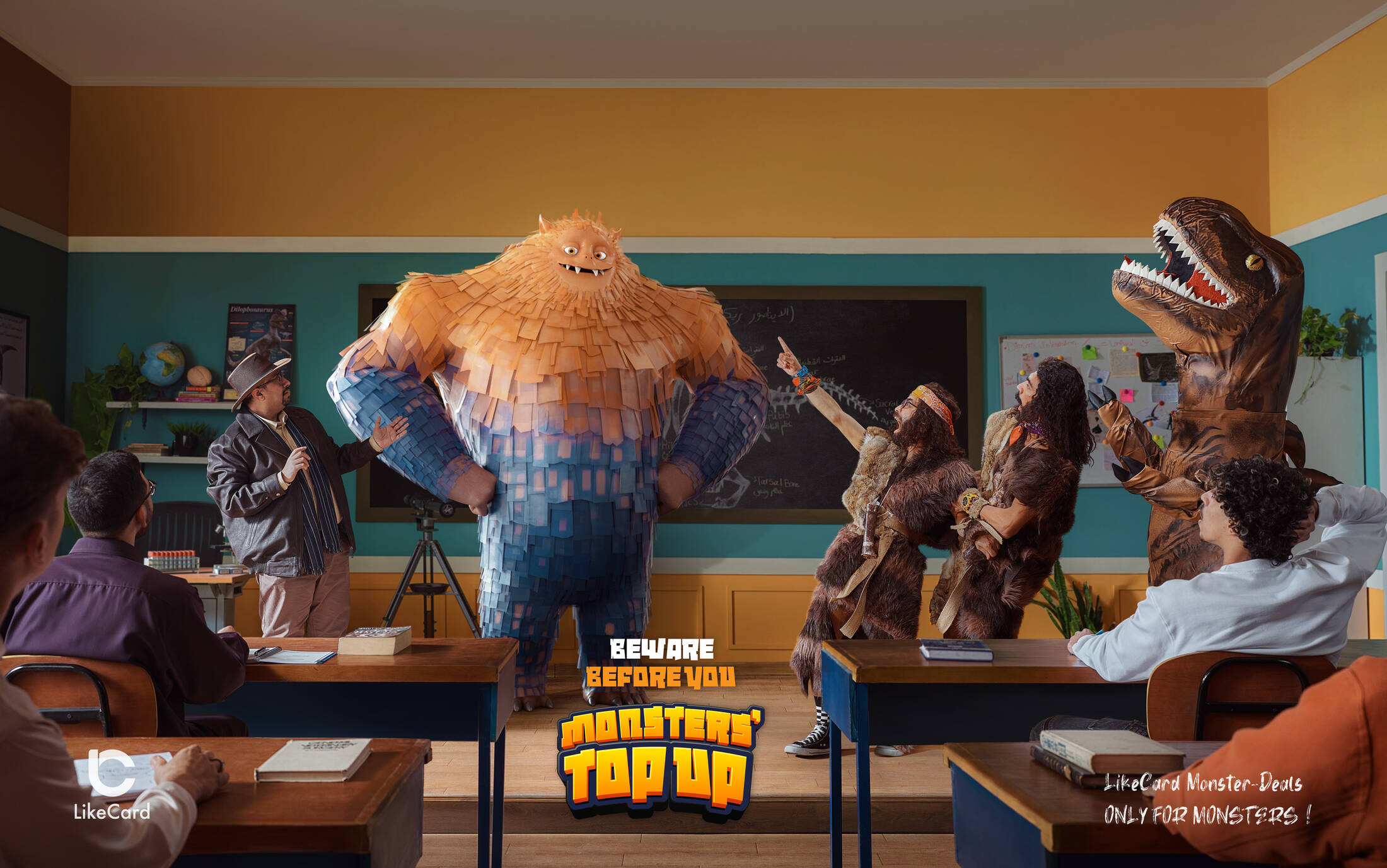 This professional campaign titled 'Top-Up like a Monster اِشْحن شَحْن اَلوُحوش' was published in Egypt, Saudi Arabia, and United Arab Emirates in March, 2024. It was created for the brand: Likecard, by ad agencies: hive innovative group and Sameh Al Tawil. This Digital, Film, and Integrated media campaign is related to the Electronics, Technology, Gaming, and Retail Services industries and contains 6 media assets. It was submitted over 1 year ago by Creative Director: Sameh Al Tawil of Hive Innovative Group .