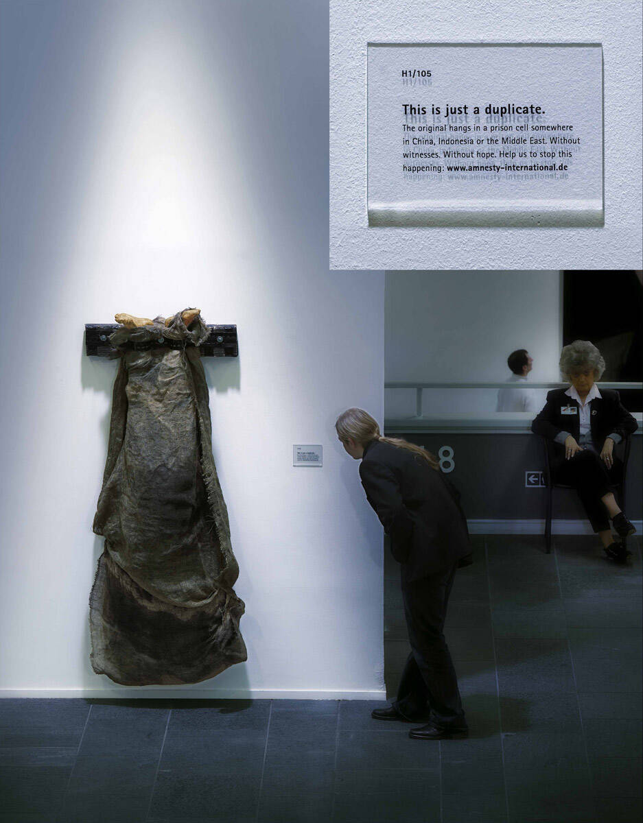 This sculpture hung in the Museum of Fine Arts Mannheim, Germany. Amnesty wanted people to experience more about a subject which often avoid and tend to pass by.