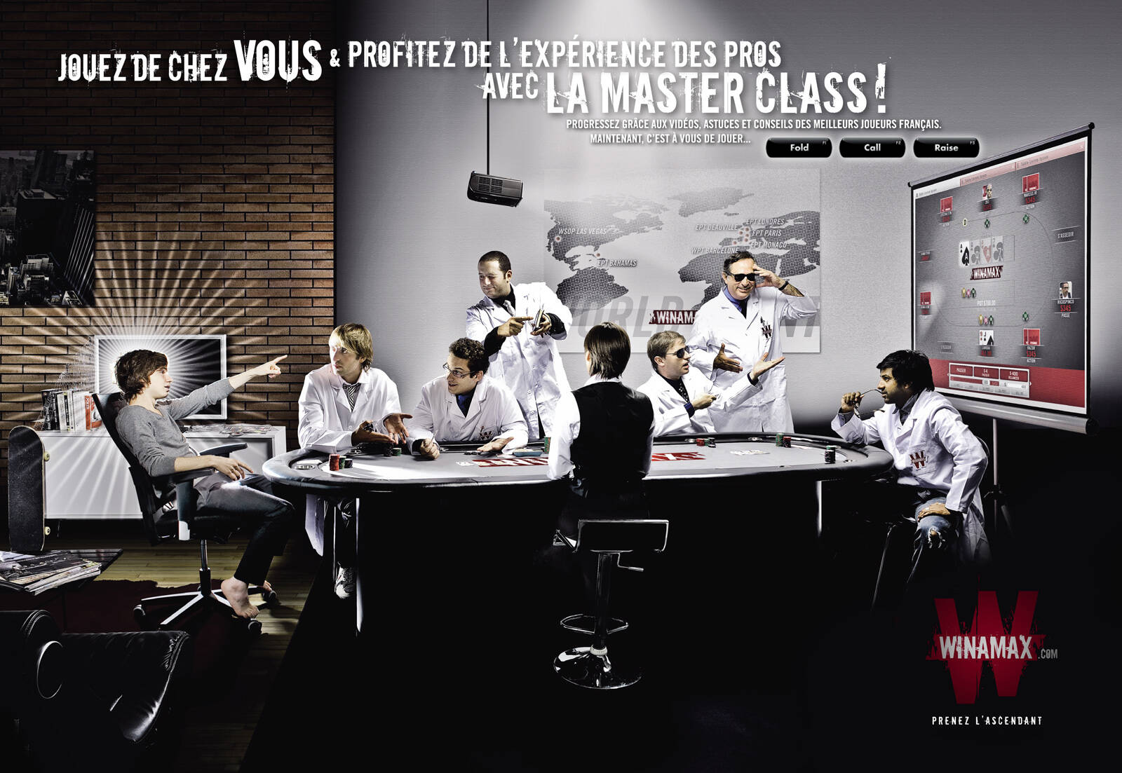 This professional campaign titled 'Tournaments, Break, Multitable, Masterclass' was published in France in April, 2012. It was created for the brand: Winamax, by ad agency: Soixanteseize. This Print medium campaign is related to the Gaming industry and contains 4 media assets. It was submitted over 13 years ago.
