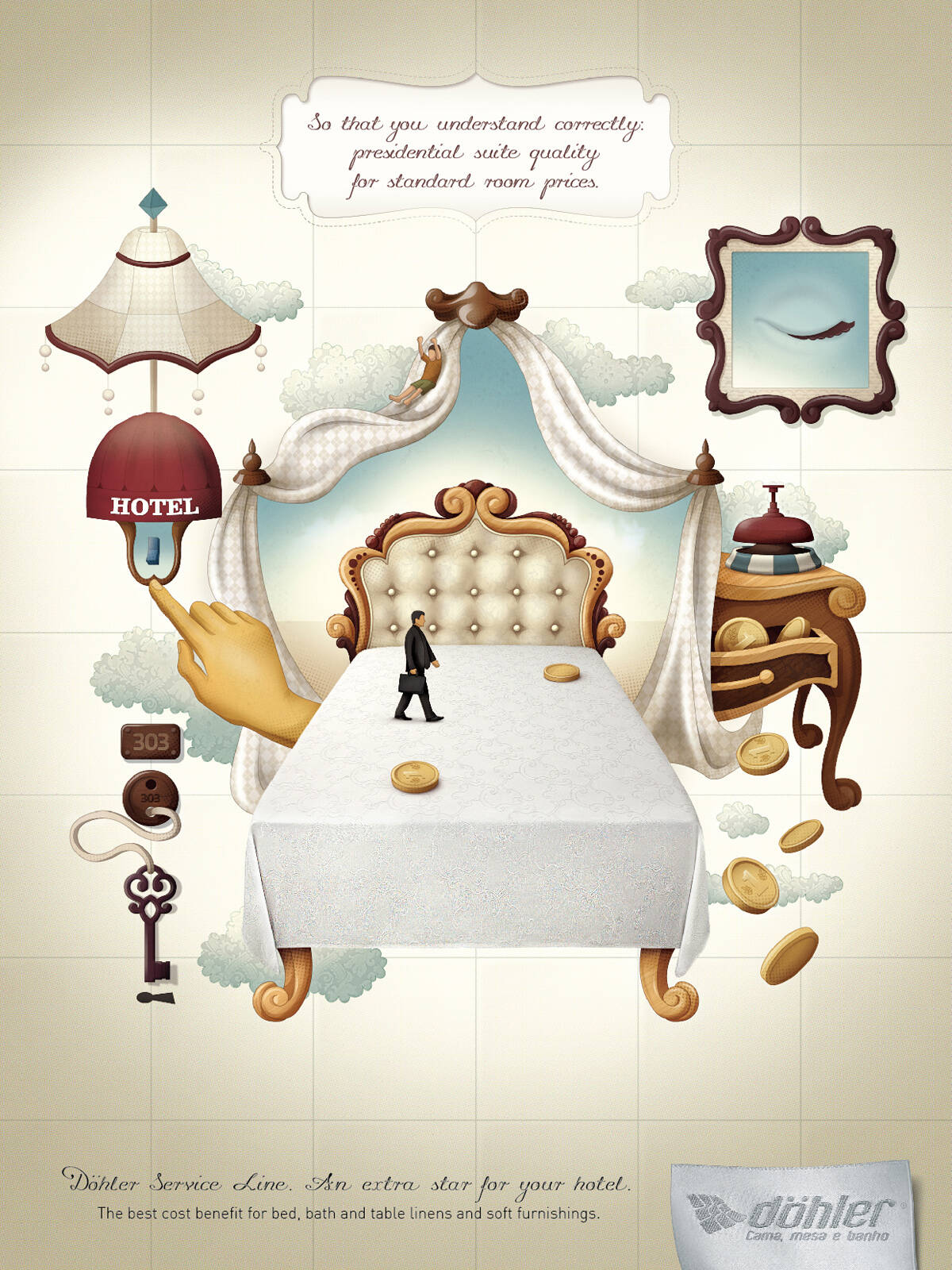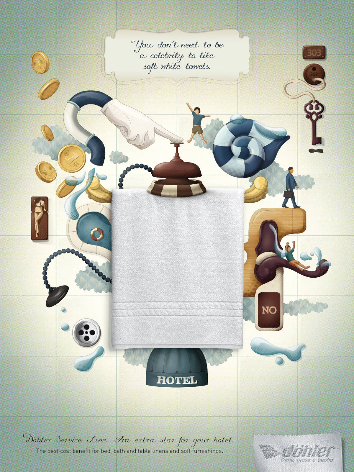 This professional campaign titled 'Towel, Bathrobe, Quilt, Pillow Case' was published in Brazil in January, 2012. It was created for the brand: Döhler, by ad agency: D/Araújo. This Print medium campaign is related to the Personal Accessories industry and contains 4 media assets. It was submitted over 13 years ago.