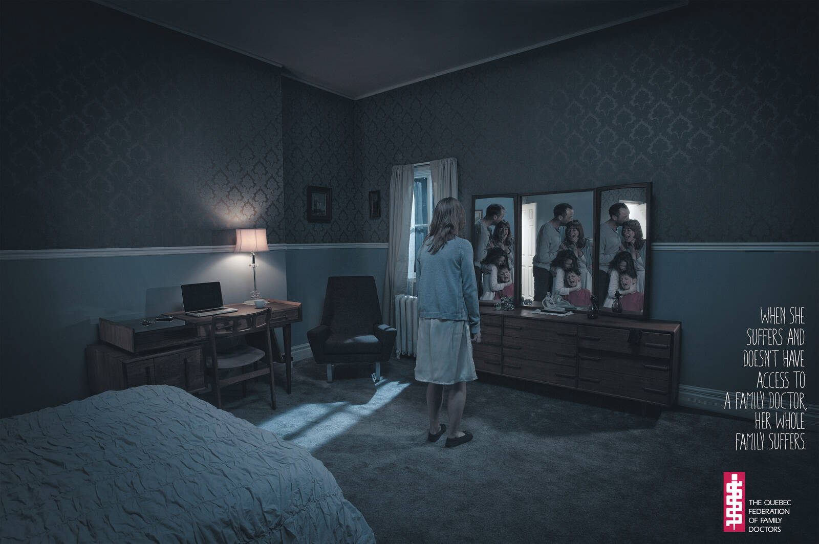 This professional campaign titled 'Trail of anxiety, Trail of tears, Fall, Hospital, Mirror' was published in Canada in April, 2011. It was created for the brand: The Quebec Federation of Family Doctors, by ad agency: BCP. This Film medium campaign is related to the Health industry and contains 5 media assets. It was submitted over 14 years ago.