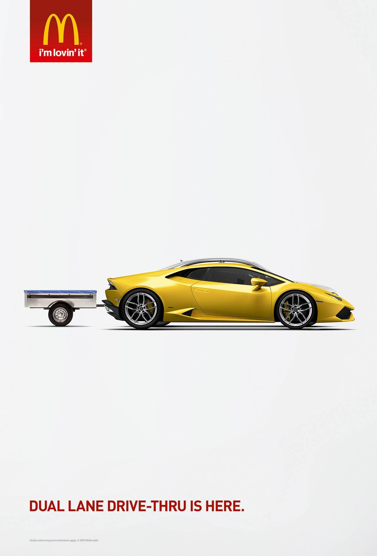 This professional campaign titled 'Trailer, Wheelbarrow, Kayak, Ice cream, Ladder' was published in United Kingdom in May, 2015. It was created for the brand: McDonald's, by ad agency: Leo Burnett. This OOH Outdoor medium campaign is related to the Food industry and contains 5 media assets. It was submitted over 10 years ago.