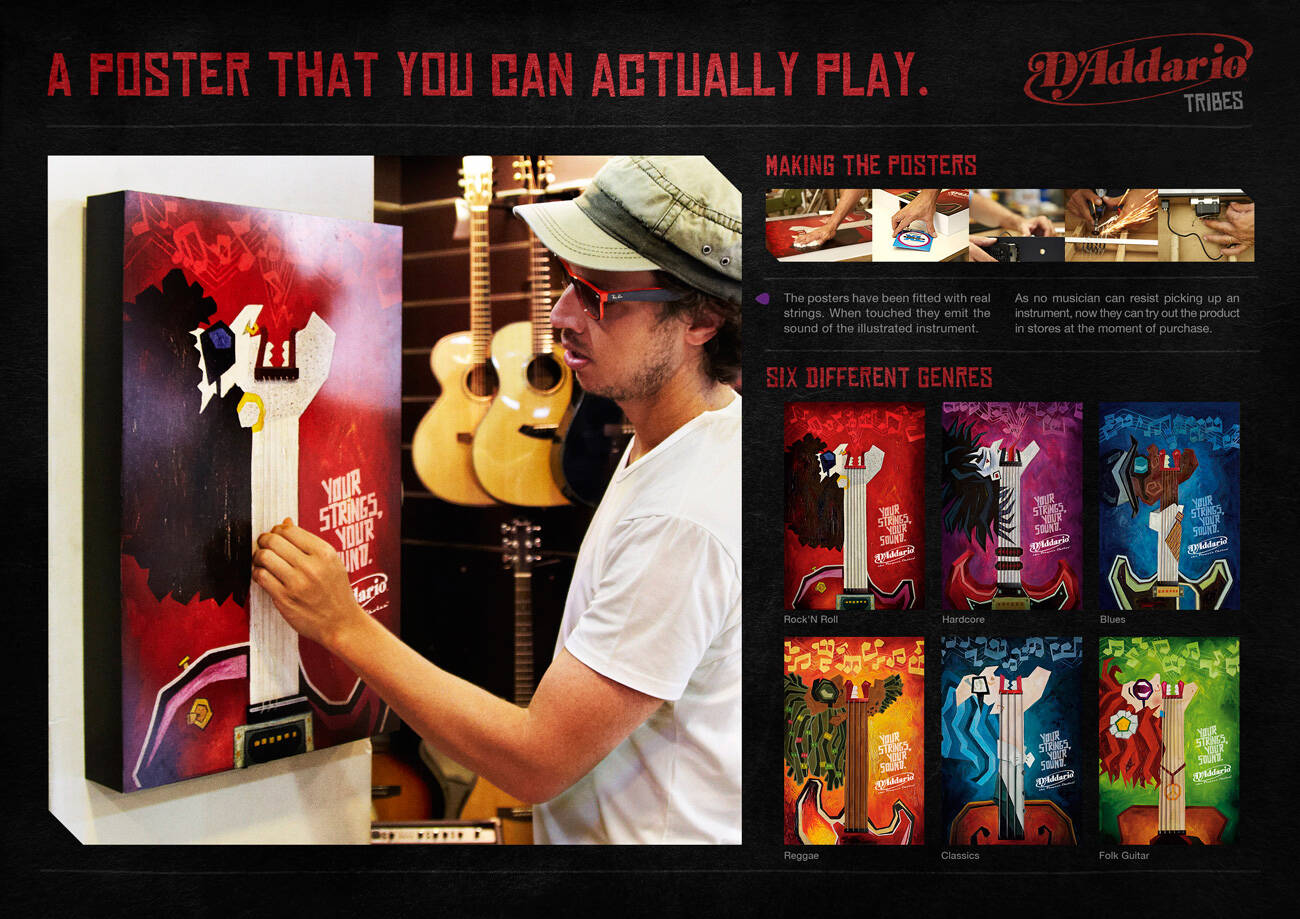 Campaign for D'Addario Strings with a poster that you can actually play.