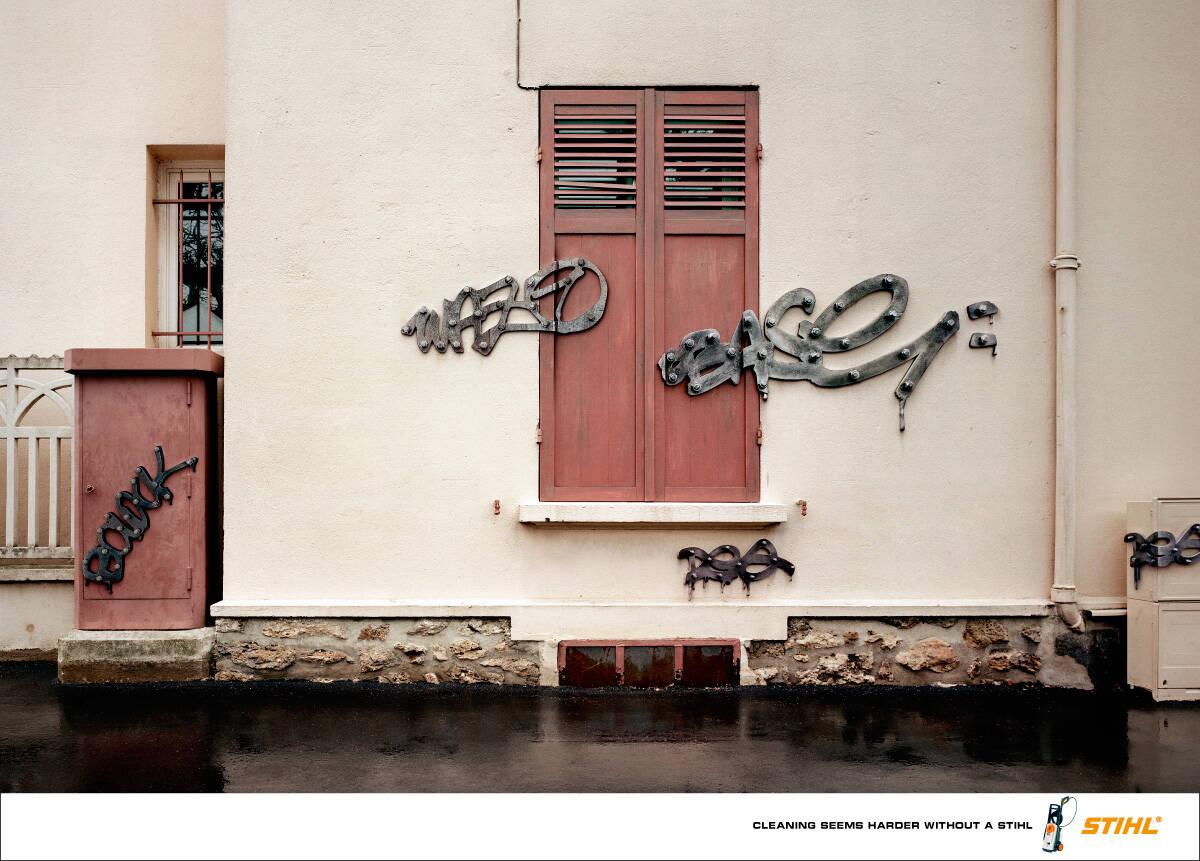 This professional campaign titled 'Trimming, Clearing, Strimming, Sawing, Cleaning' was published in France in September, 2008. It was created for the brand: Stihl, by ad agency: Publicis. This Print medium campaign is related to the House, Garden industry and contains 5 media assets. It was submitted about 17 years ago.