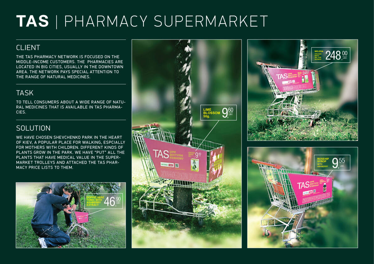 This professional campaign titled 'Trolley' was published in Ukraine in September, 2012. It was created for the brand: TAS, by ad agency: Saatchi & Saatchi. This Ambient medium campaign is related to the Health industry and contains 1 media asset. It was submitted about 13 years ago.