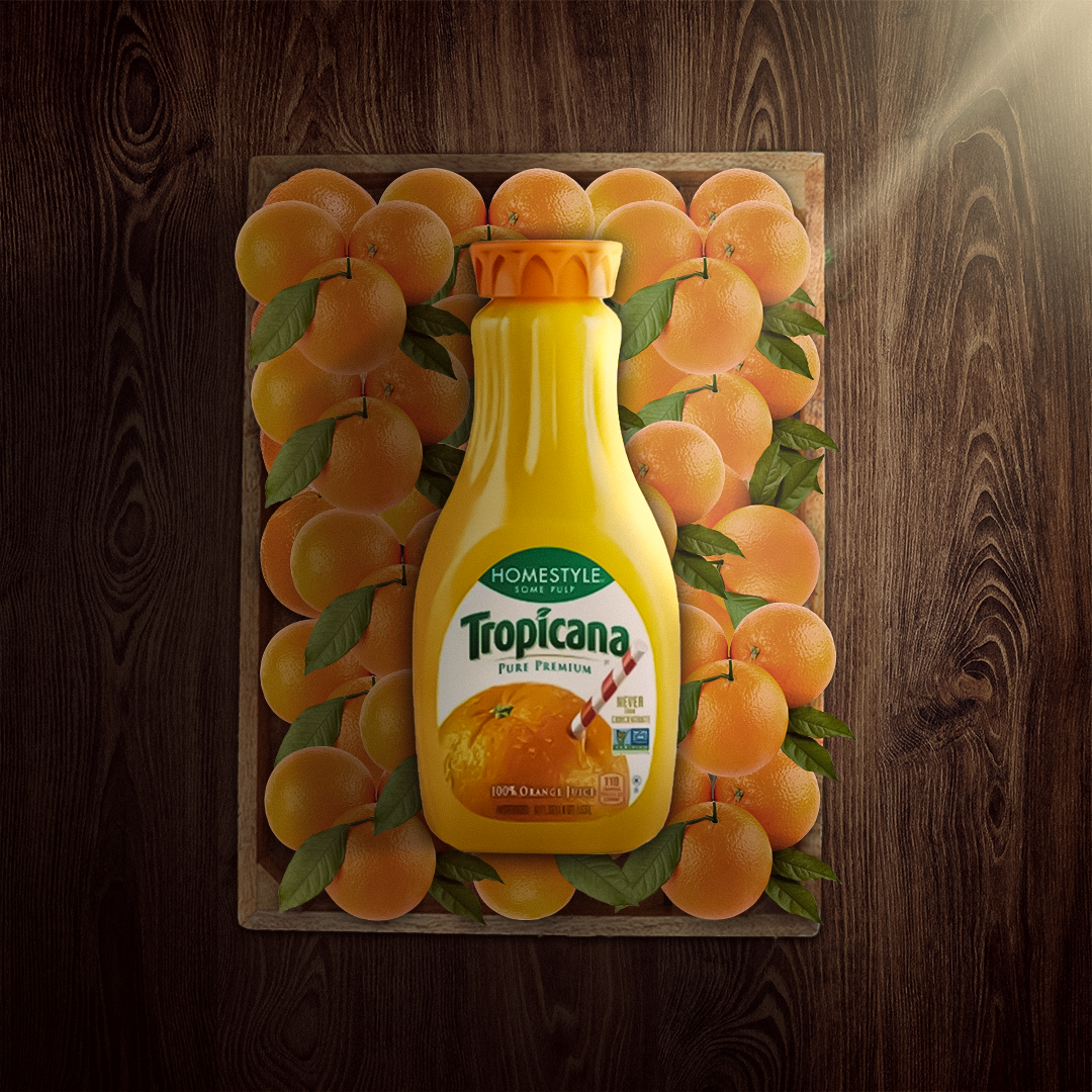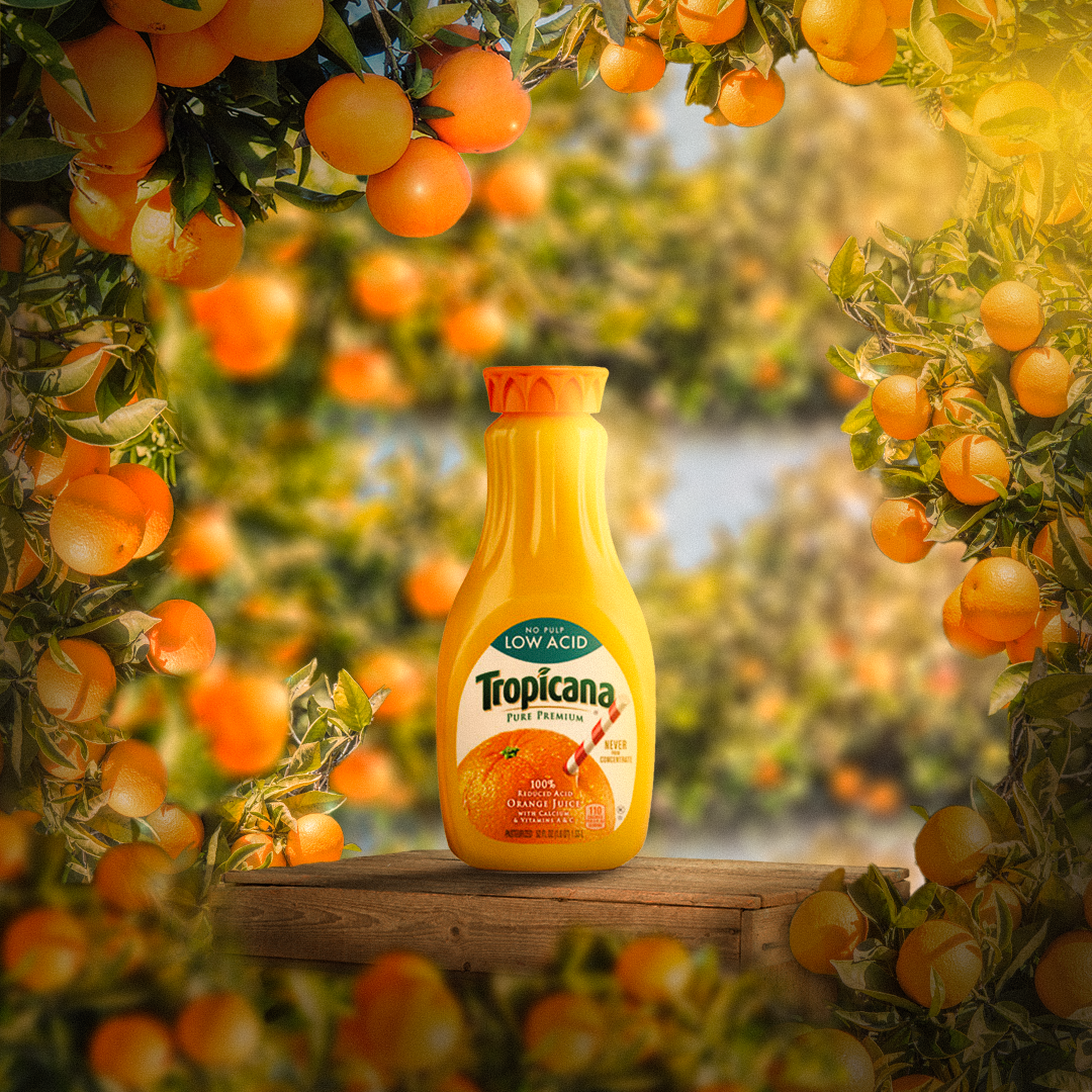 An advertising campaign that puts the beautiful nature of delicious oranges in the making of the delicious Tropicana drink