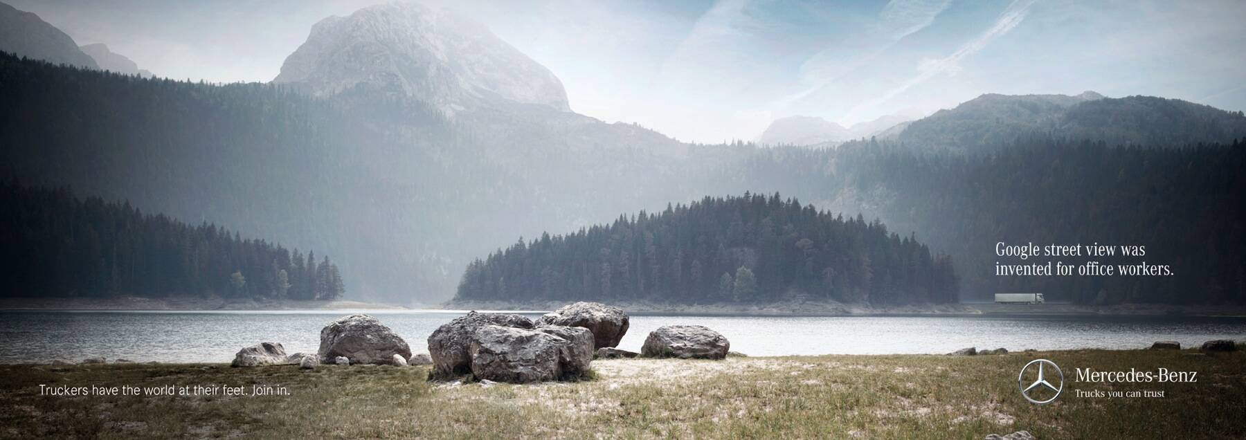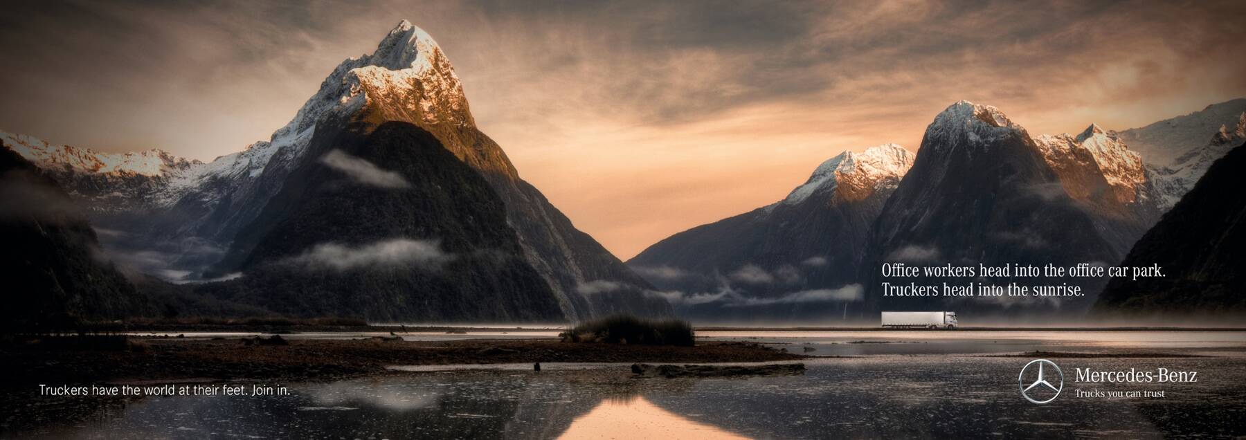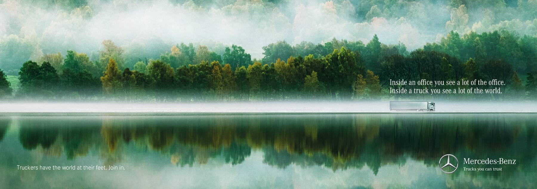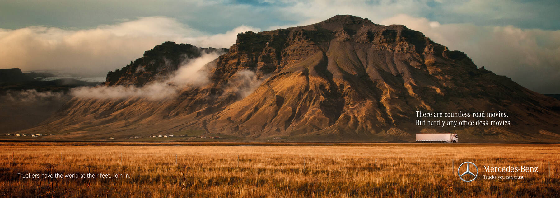 Mercedes-Benz trucks is helping the logistics industry by tempting young people to consider a career as truck-driver. These posters and print ads run at career advice fairs and in school magazines.