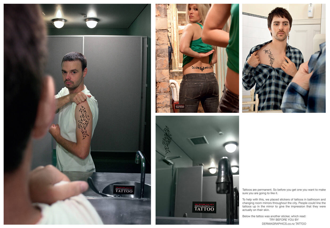 This professional campaign titled 'Try Before You Buy' was published in New Zealand in April, 2009. It was created for the brand: Dermagraphic Tattoo, by ad agency: BBDO. This Ambient medium campaign is related to the Professional Services industry and contains 1 media asset. It was submitted almost 16 years ago.