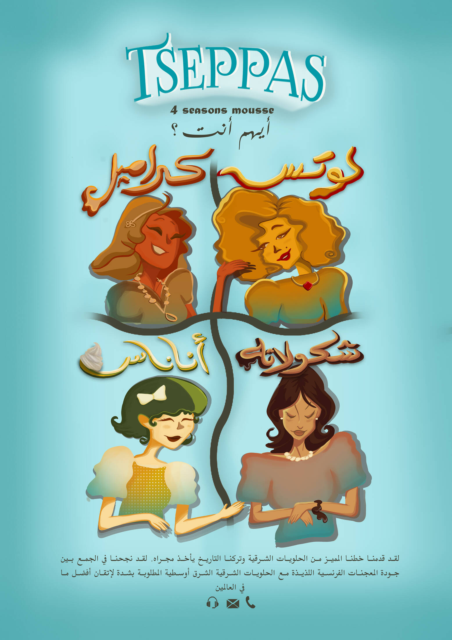 Tseppas is a desserts shop, it combines French pastry with highly demanded Middle Eastern Oriental desserts ,its located in Egypt, illustration design campaign made by rana , using photoshop and illustrator.