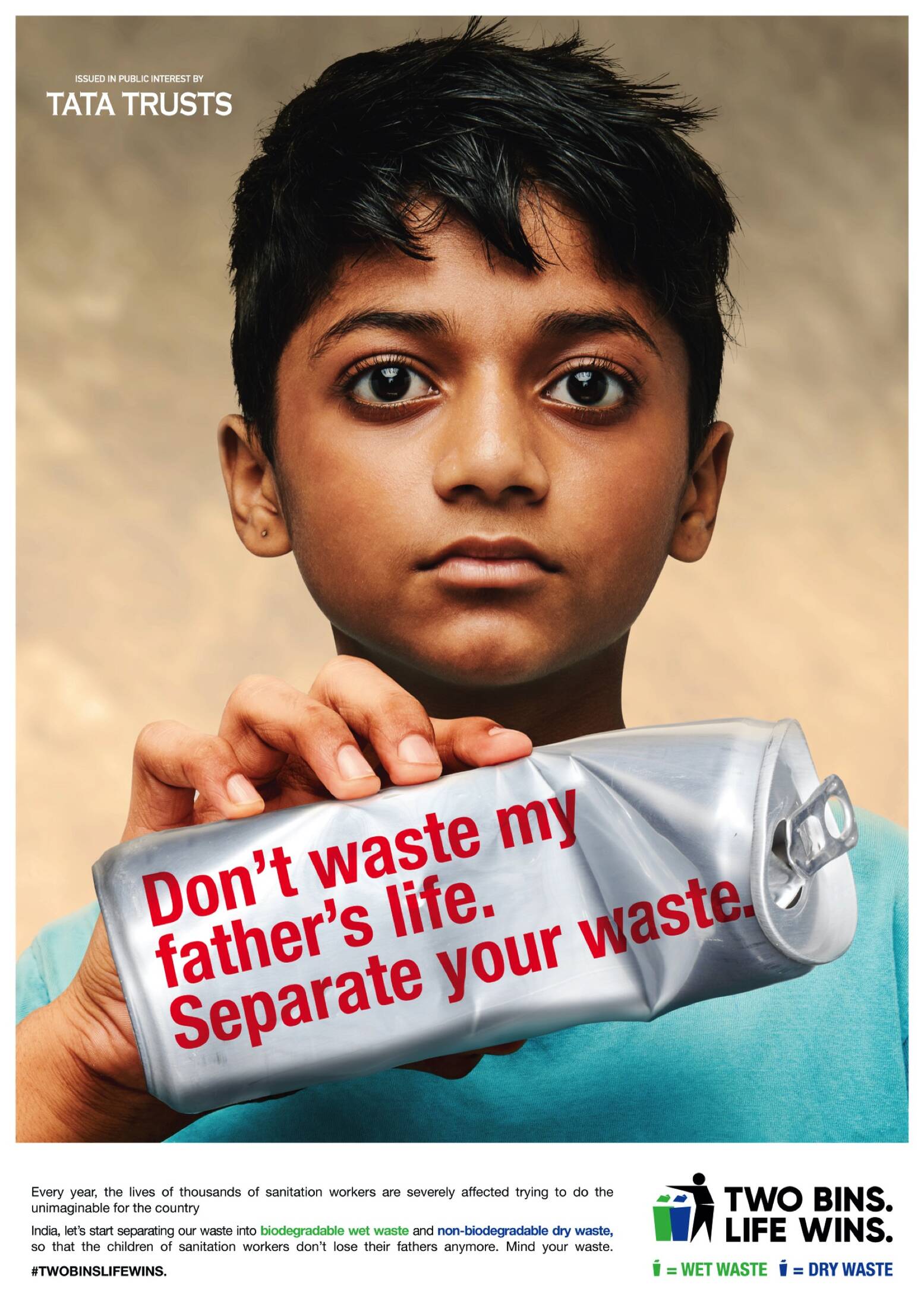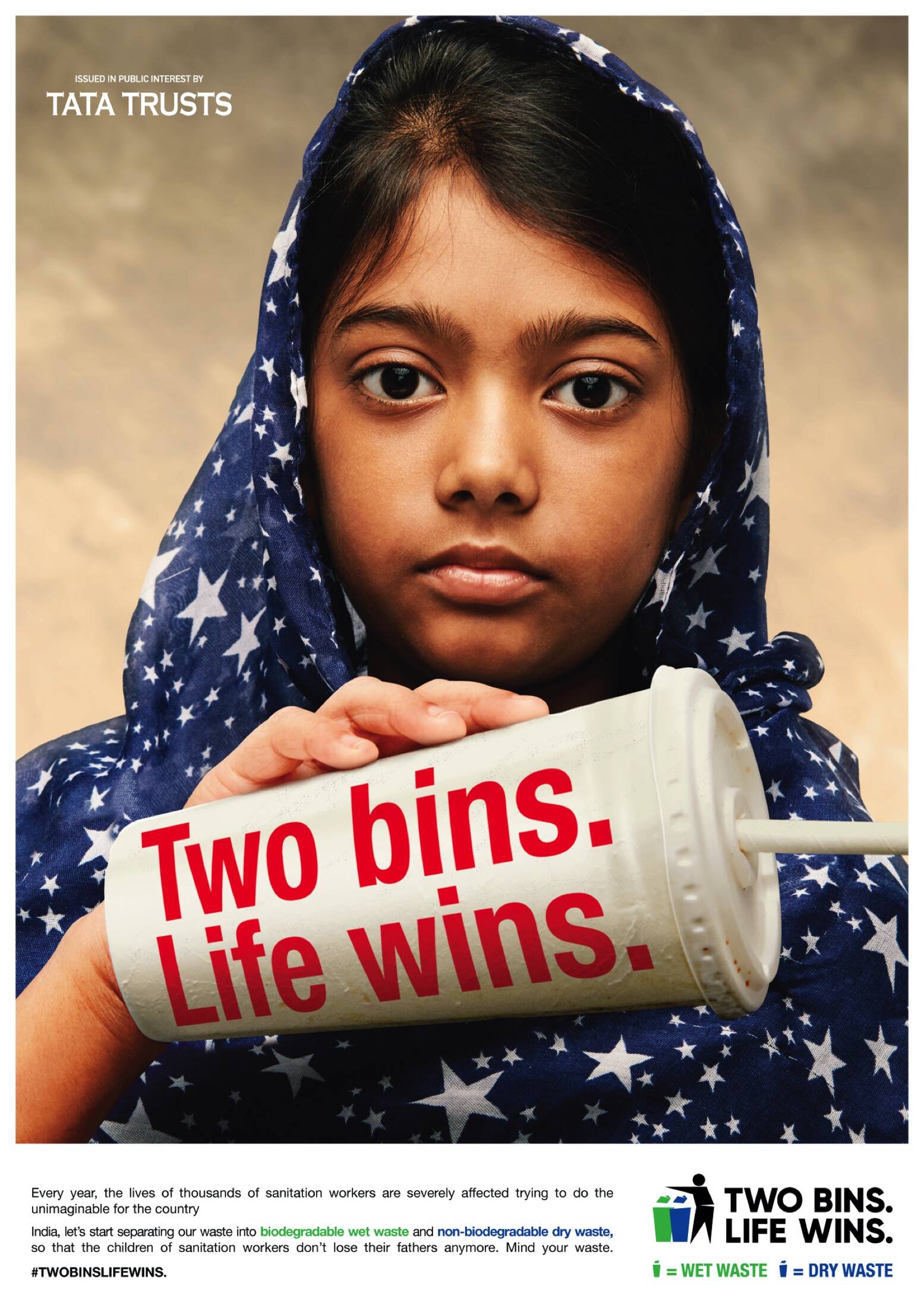 #TwoBinsLifeWins gives voice to conservancy workers and their families. In a bid to engage citizens to adopt improved waste management practices, Tata Trusts, through its programme, Mission Garima, has launched a campaign -- #TwoBinsLifeWins. The campaign brings to light the story of a child whose father has to segregate waste in sewers because citizens wouldn’t.