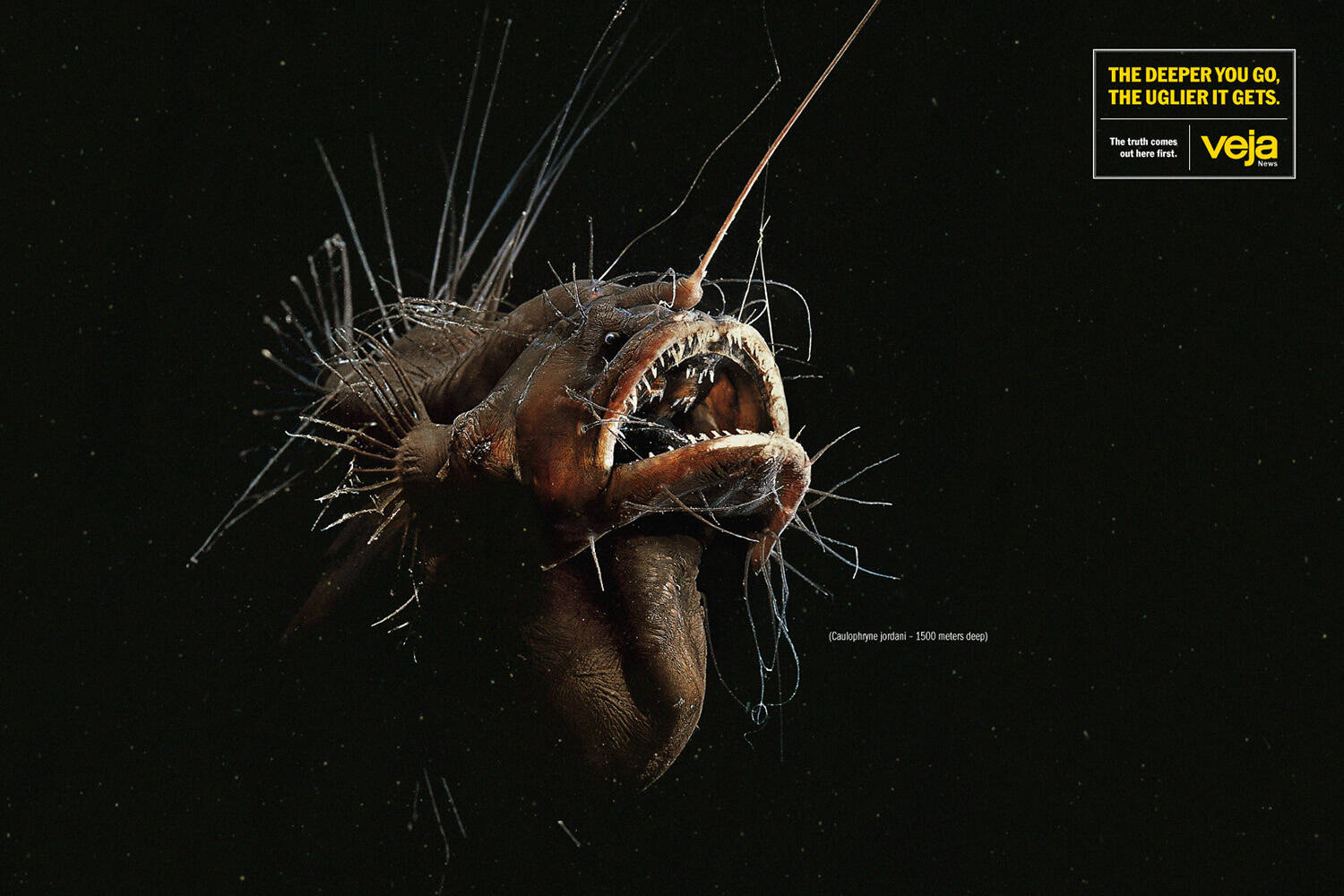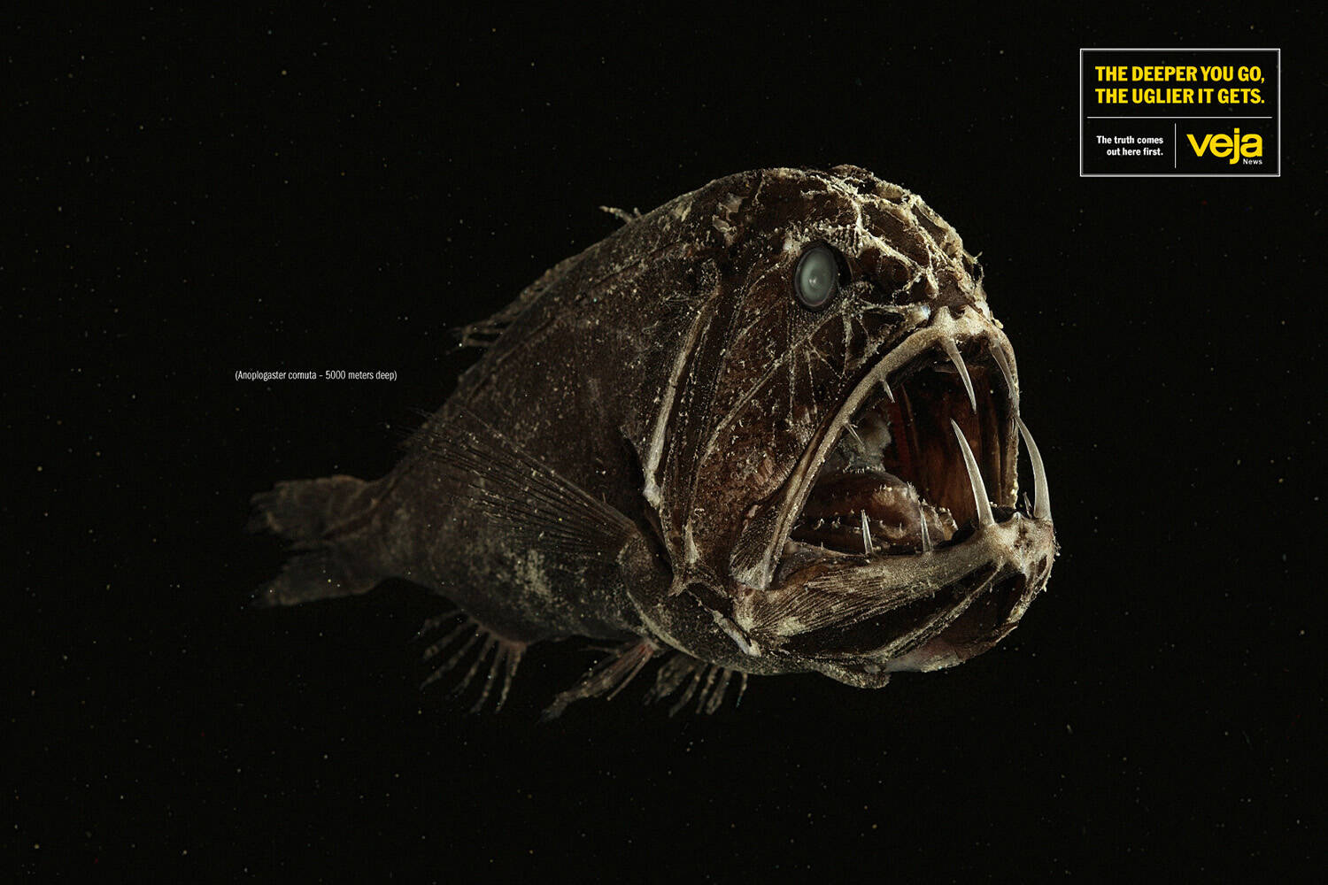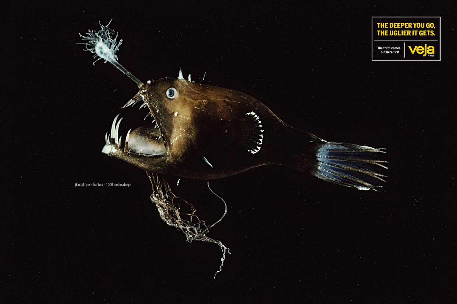This professional campaign titled 'Ugly, Fish' was published in Brazil in May, 2016. It was created for the brand: Revista Veja, by ad agency: BBDO. This Print medium campaign is related to the Media industry and contains 5 media assets. It was submitted over 9 years ago.