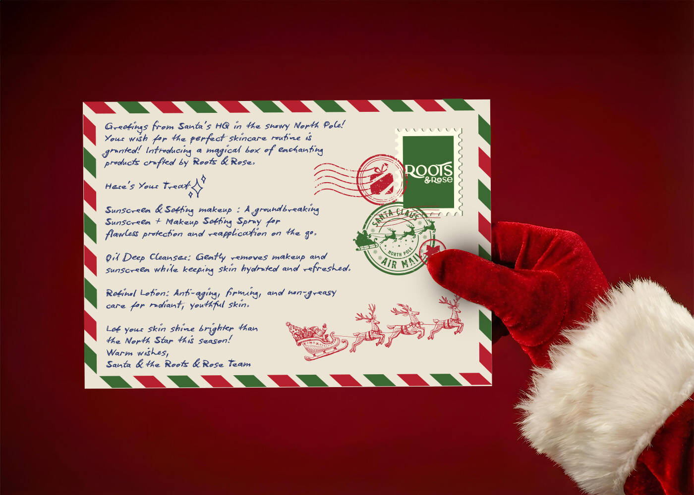 Marklinica created the Christmas PR box for Roots and Rose with one goal in mind: to design an unboxing experience that feels warm, nostalgic, and unmistakably magical. Every detail inside the box was crafted to turn skincare into a holiday moment filled with emotion, charm, and the signature elegance of Roots and Rose.