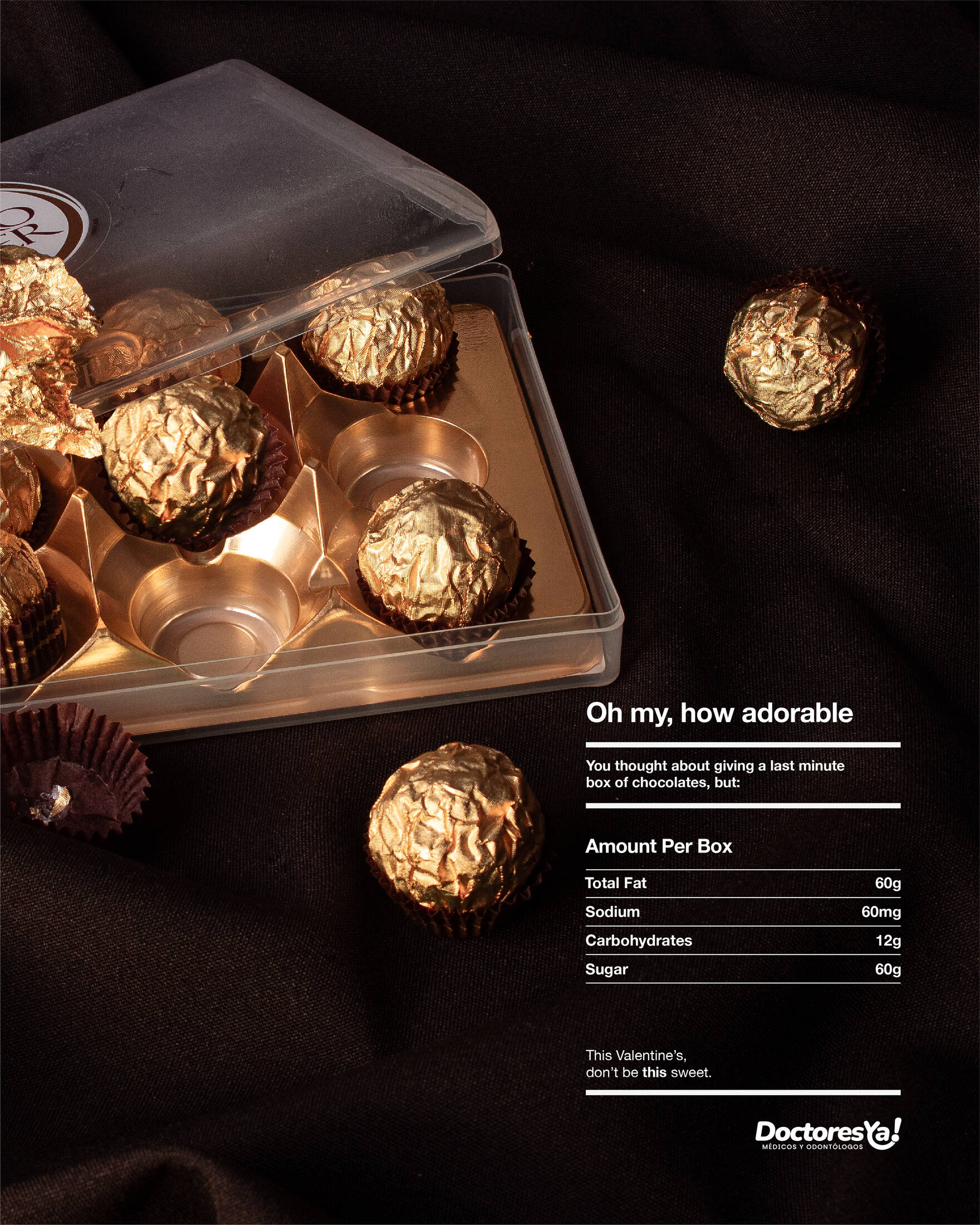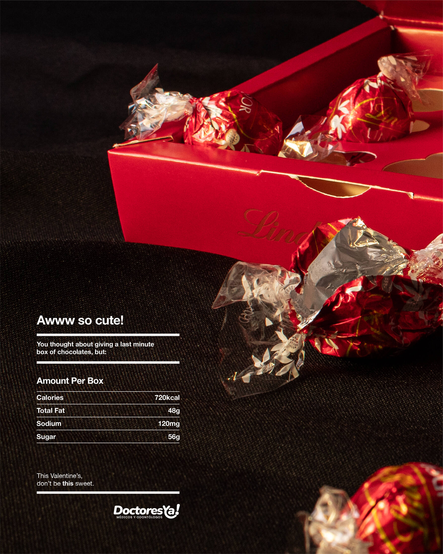 Giving chocolates also means giving high doses of sugar, calories, fats, sodium, and many things that are bad for our health. That's why this Valentine's Day, Doctores Ya! encourage you to think before you act, to continue showing your love, but consciously, in a less "sweet" way.