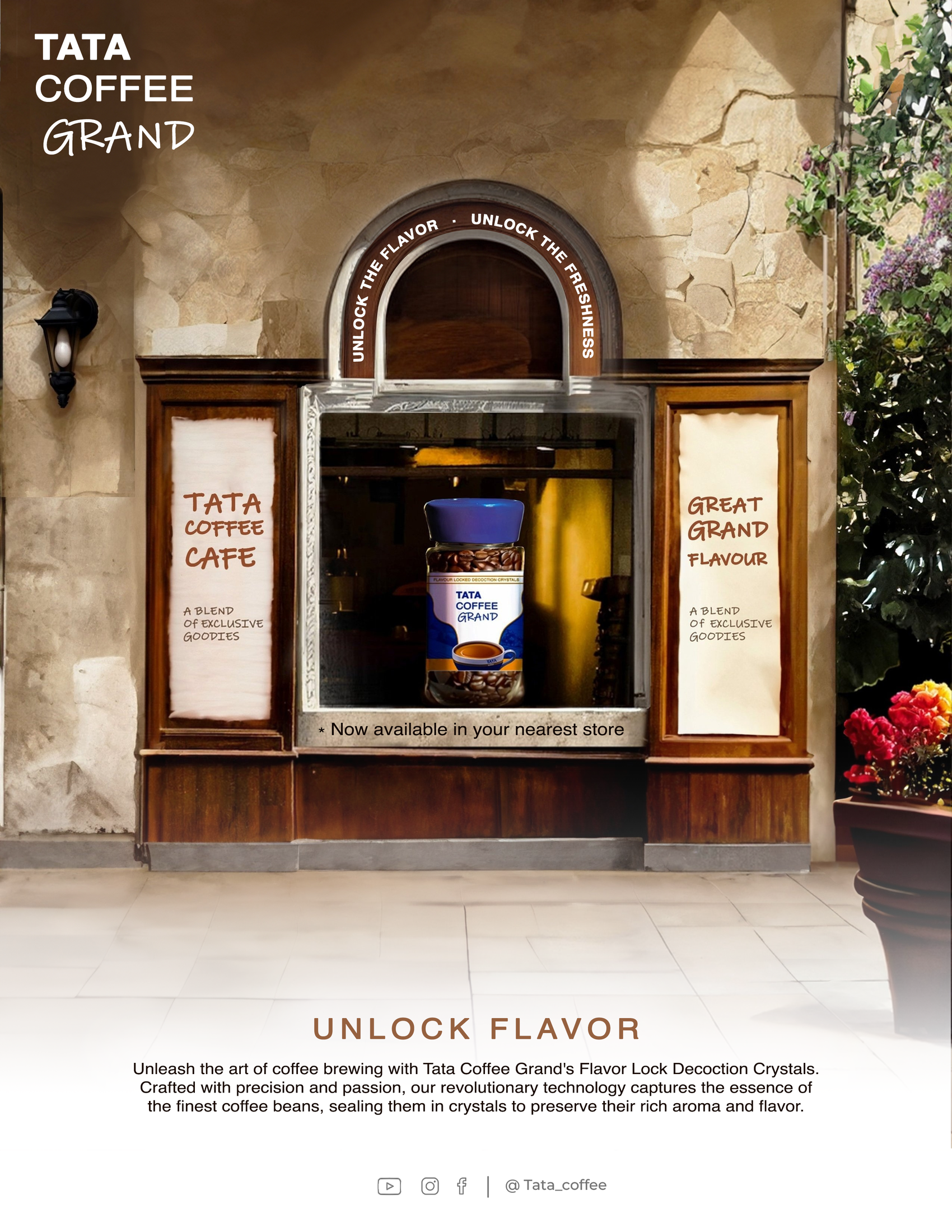 Unlock a world of rich and fresh coffee experiences with Tata Coffee Grand – the secret lies in the lock! Tata Coffee Grand Coffee uses flavor-locked decoction crystals, this technology is the key differentiator for the brand, as they lock in the taste and aroma of the coffee and keep the flavor fresh like no other.