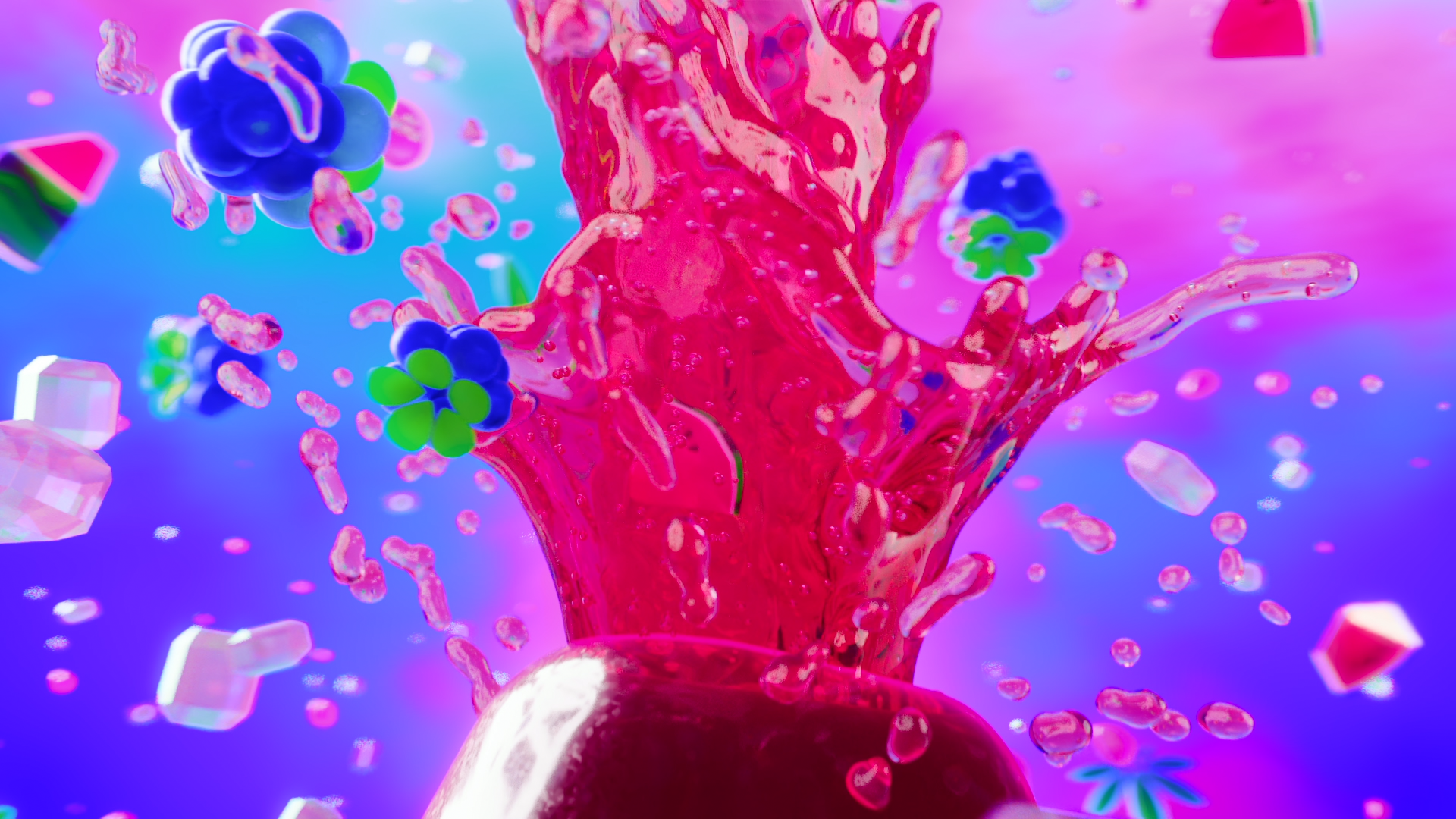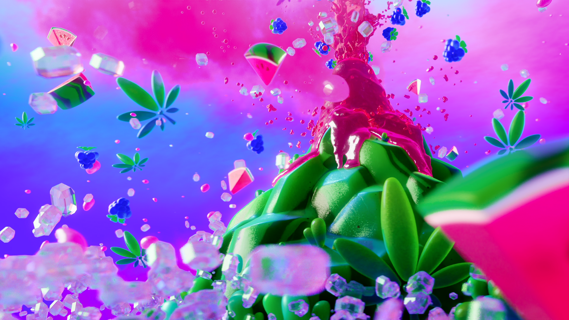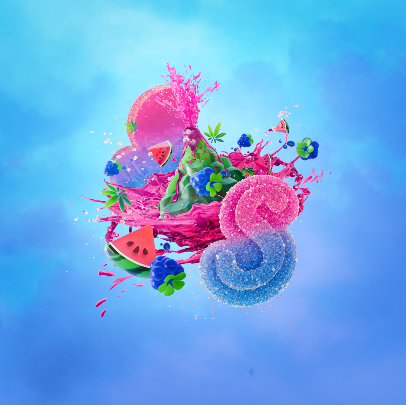 The campaign tosses aside the usual cannabis advertising clichés from photorealistic fruit to water simulations. From the moment the rich, succulent, gummy splits open, the animation explodes into action. Viewers are launched into a stylized flavorverse where glossy fruit bubbles float, puffy textures swirl, and vibrant colors swallow your screen.