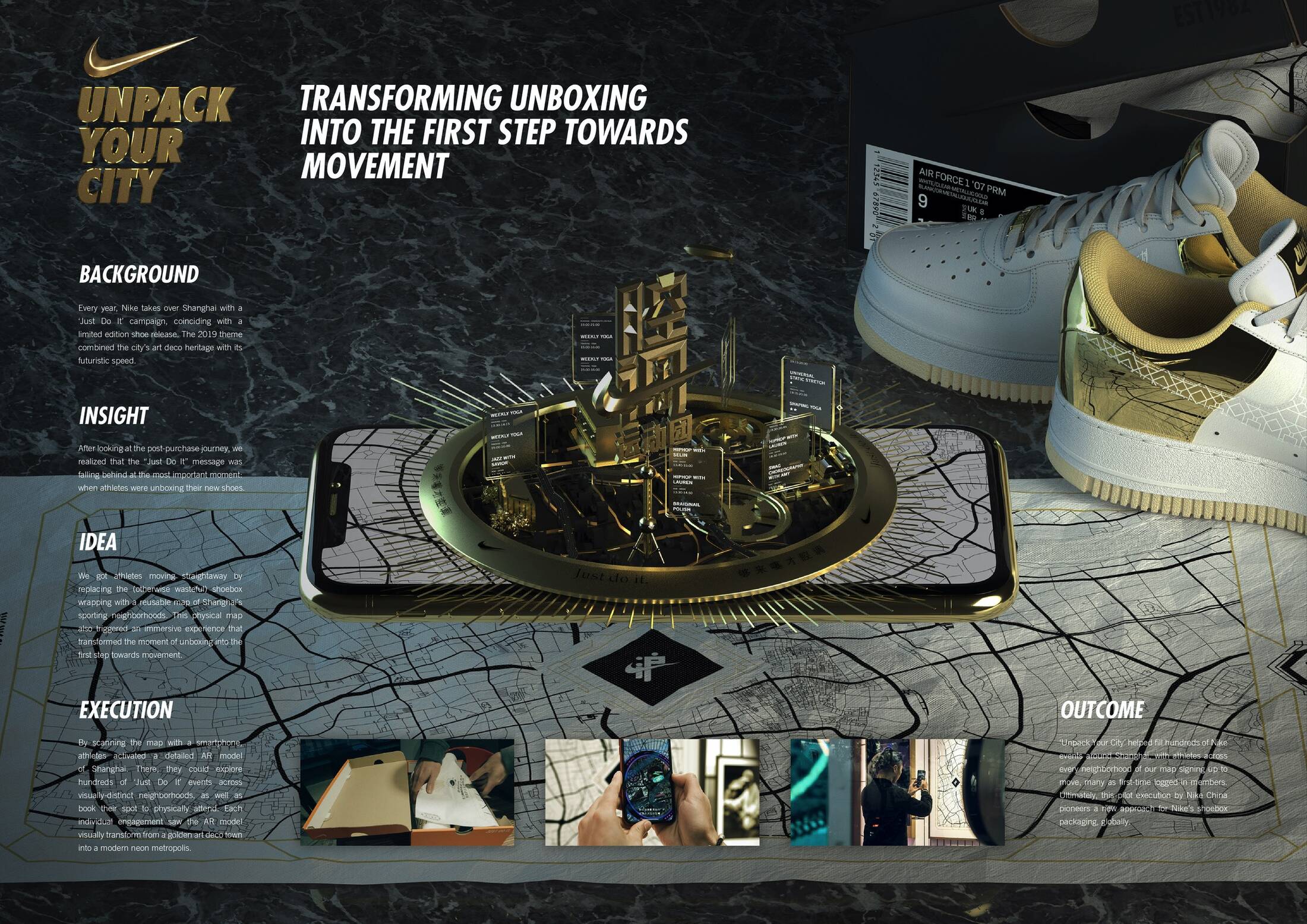 This professional campaign titled 'Unpack Your City' was published in China in December, 2019. It was created for the brand: Nike, by ad agency: AKQA. This Static Images medium campaign is related to the Fashion, Retail Services, and Sports industries and contains 2 media assets. It was submitted over 5 years ago by Group Creative Director: Tim Mac of AKQA.