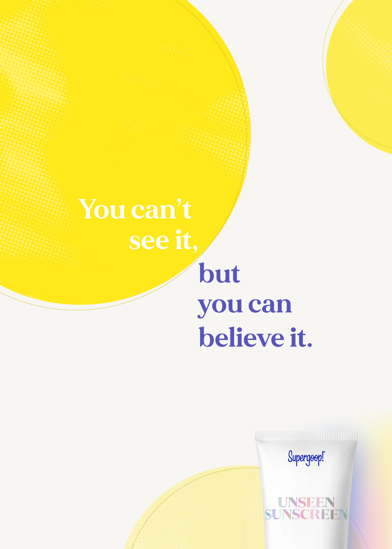 This student campaign titled 'Unseen Sunscreen' was published on January 01, 2018. It was created for the brand: Supergoop!, by ad school: Southern Methodist University. This campaign is related to the Beauty industry and contains 7 media assets. It was submitted almost 3 years ago by Senior Lecturer & Creative Program Director: Mark Allen of Southern Methodist University.
