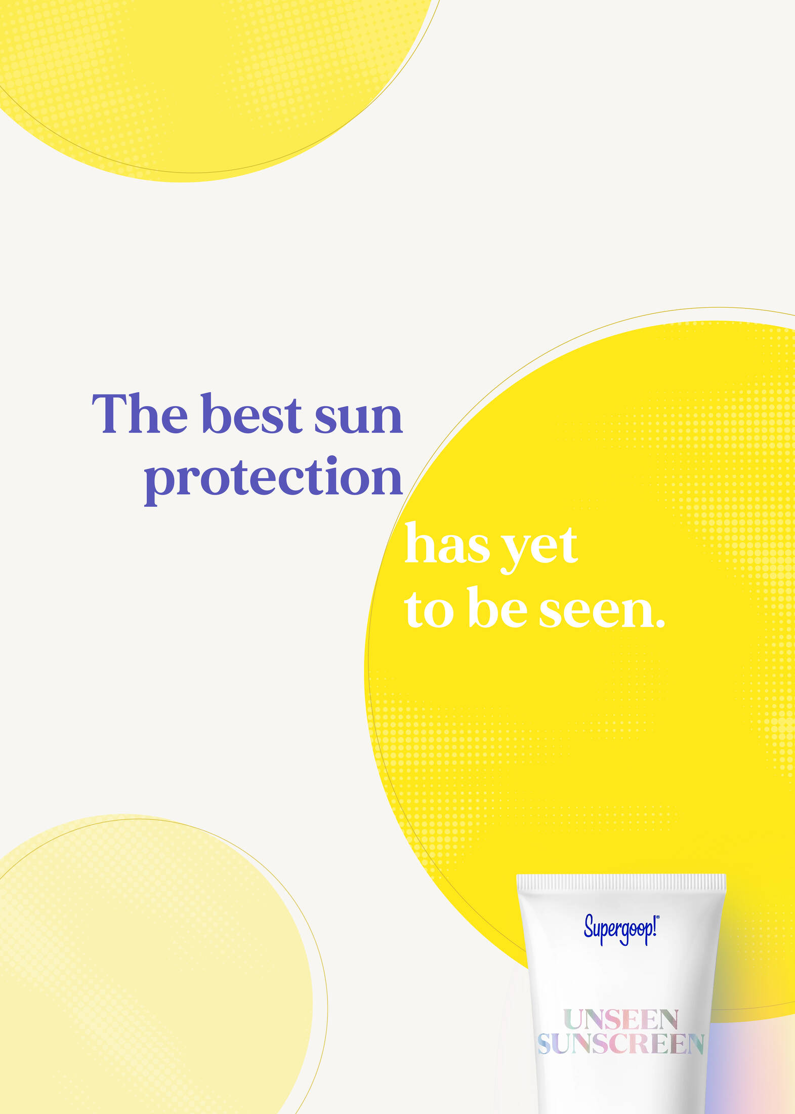 Supergoop! Unseen Sunscreen has an oil-free formula that glides onto skin totally clear, weightless and scentless with a velvety finish.