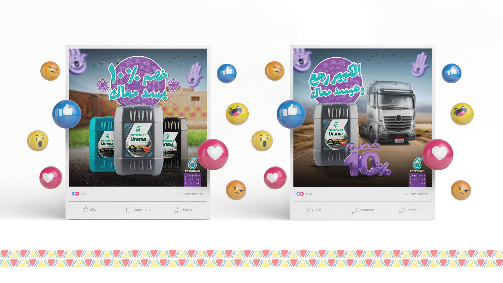 This campaign is for a product dedicated to heavy transport vehicles, so we used some elements that belong to the culture of buyers and truck drivers.