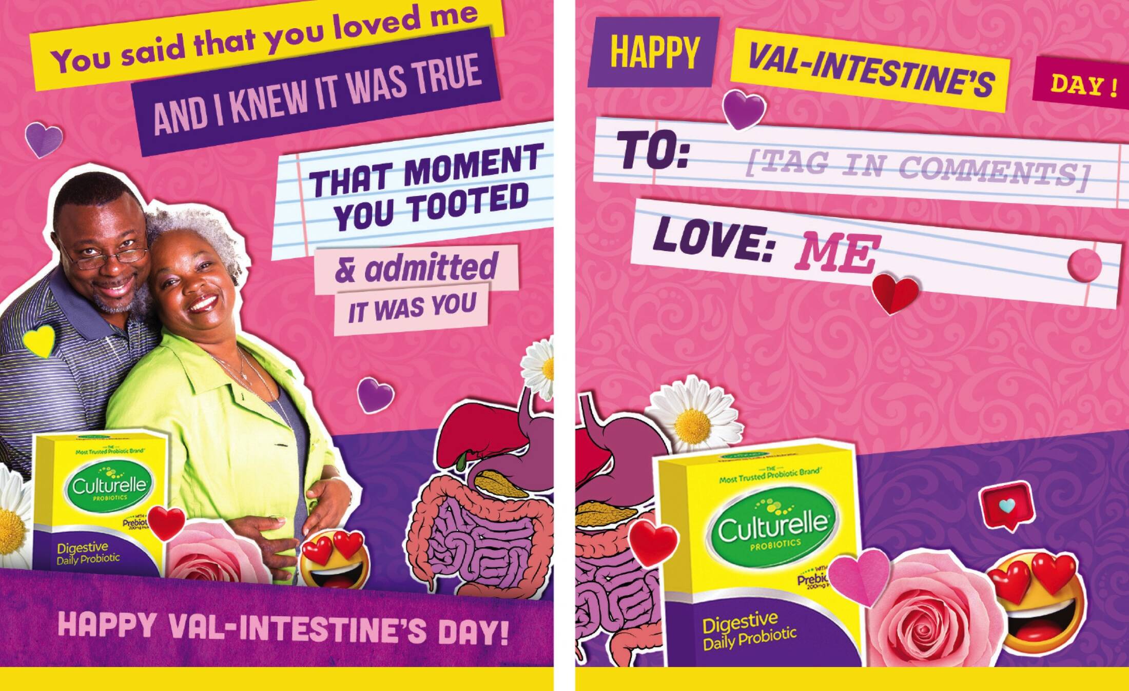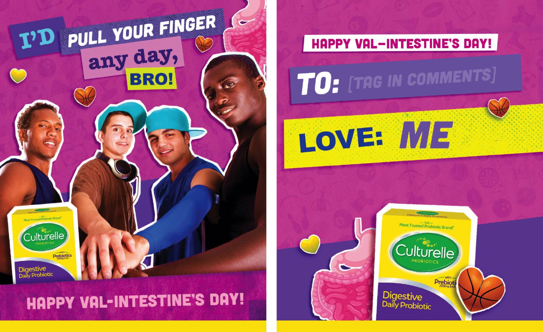 When you love someone. Really love someone. You accept everything about them. Even their most embarrassing tendencies. So for Valentine’s Day, Culturelle Probiotics celebrated this deep down kind of love by launching "Val-Intestine's Day." The program featured a quippy gallery of digestive-themed ecards so anyone could tell that special someone, family member or friend "I love your stinking guts." Literally.