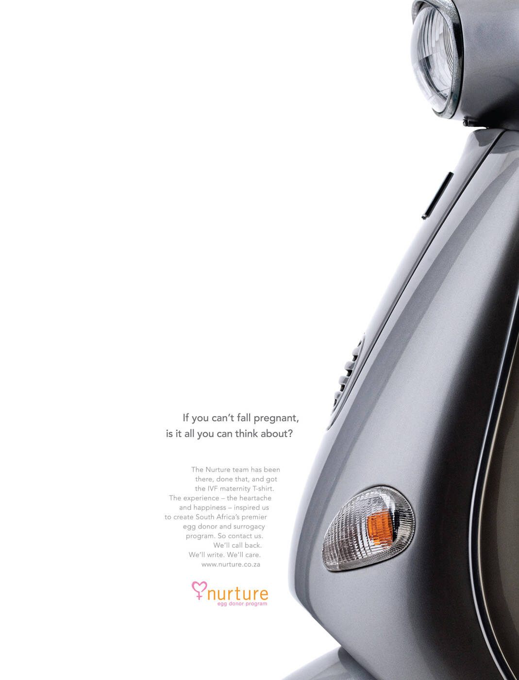This professional campaign titled 'Vase, Scooter, Guitar' was published in South Africa in May, 2009. It was created for the brand: Nurture, by ad agency: At Pace. This Print medium campaign is related to the Health industry and contains 3 media assets. It was submitted about 16 years ago.
