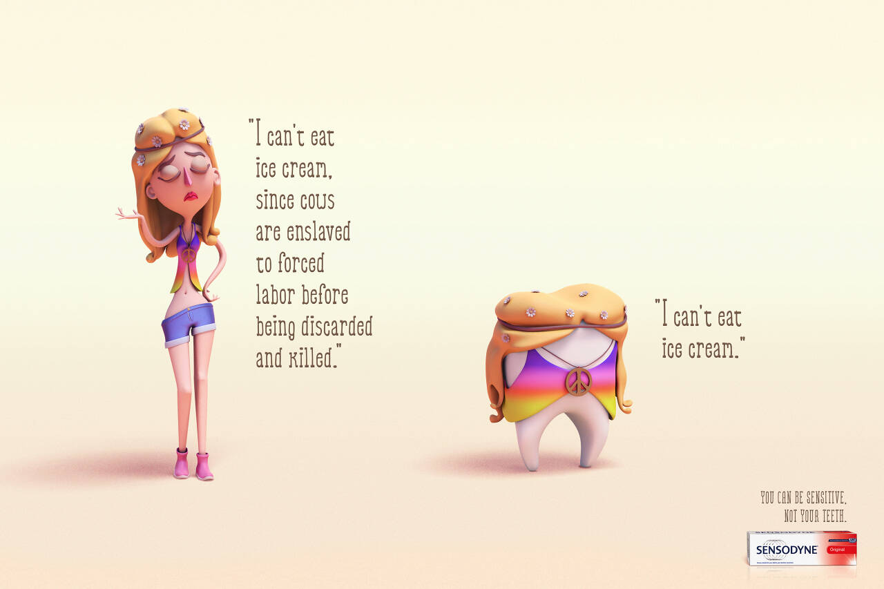 This professional campaign titled 'Vegan Teeth, Hipster Teeth' was published in Brazil in February, 2014. It was created for the brand: Sensodyne, by ad agency: Grey. This Print medium campaign is related to the Health industry and contains 2 media assets. It was submitted over 11 years ago.