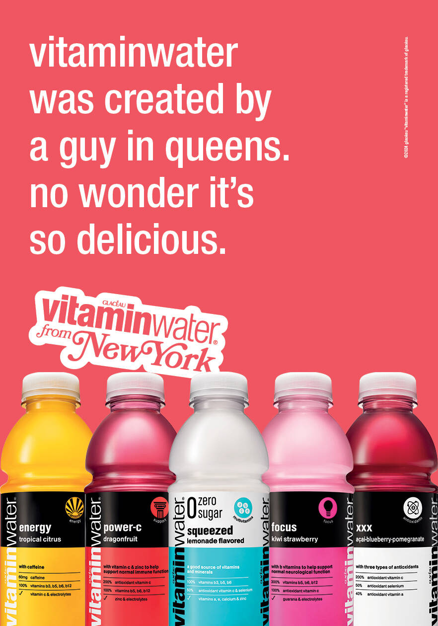 Vitaminwater is debuting a new campaign entitled “vitaminwater from New York” -- the brand’s first in two years. Did you know that vitaminwater was born in New York City? Our rainbow of flavors are a reflection of the city's diverse and vibrant surroundings. This is why the brand’s latest campaign pays homage to the unique energy of New York City that is reminiscent of what the brand is today -- colorful, flavorful, and anything but boring.