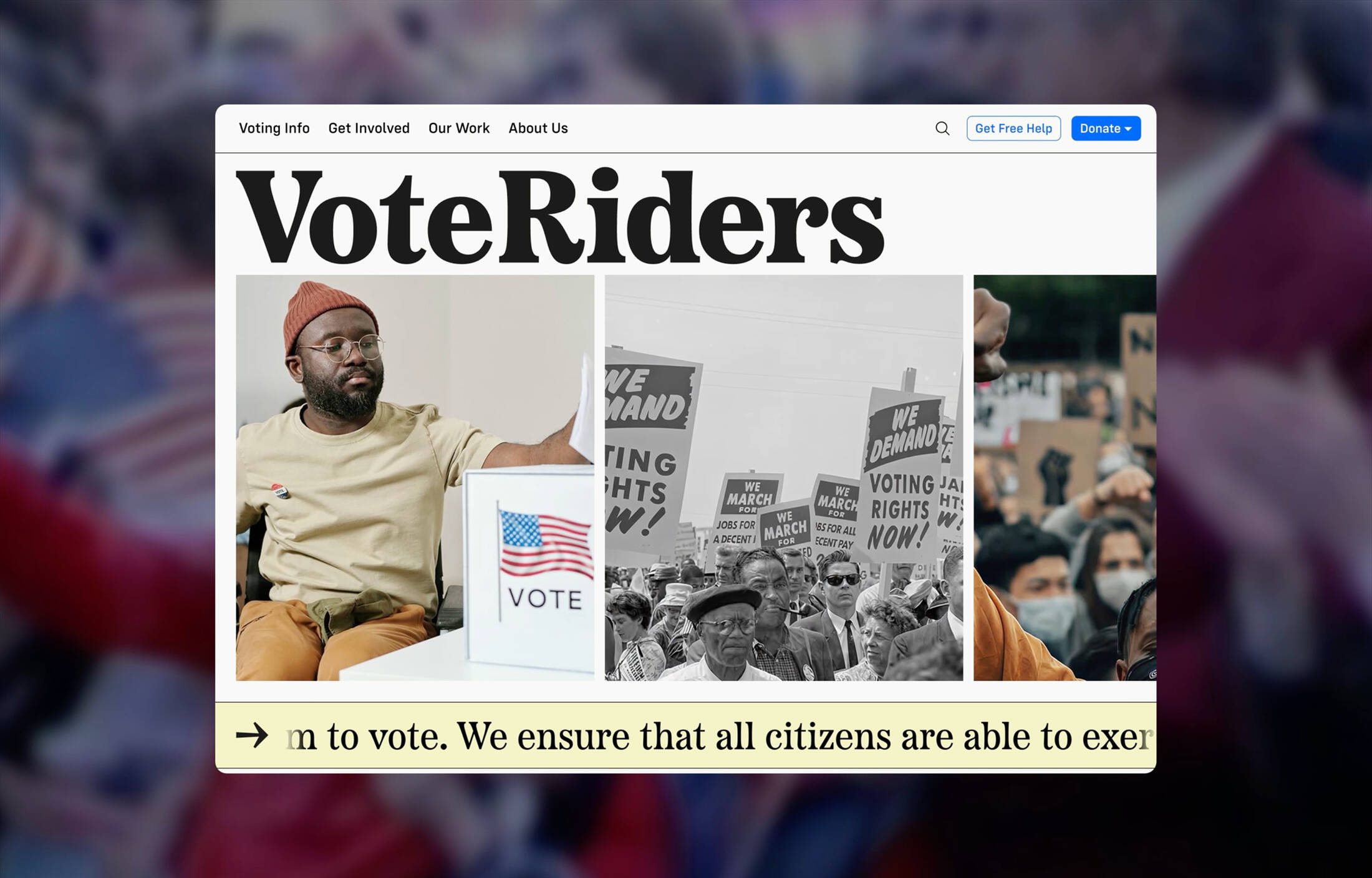 By merging bold visual language with a rigorous information architecture, the new VoteRiders platform demonstrates how creative practice can directly impact democratic participation.