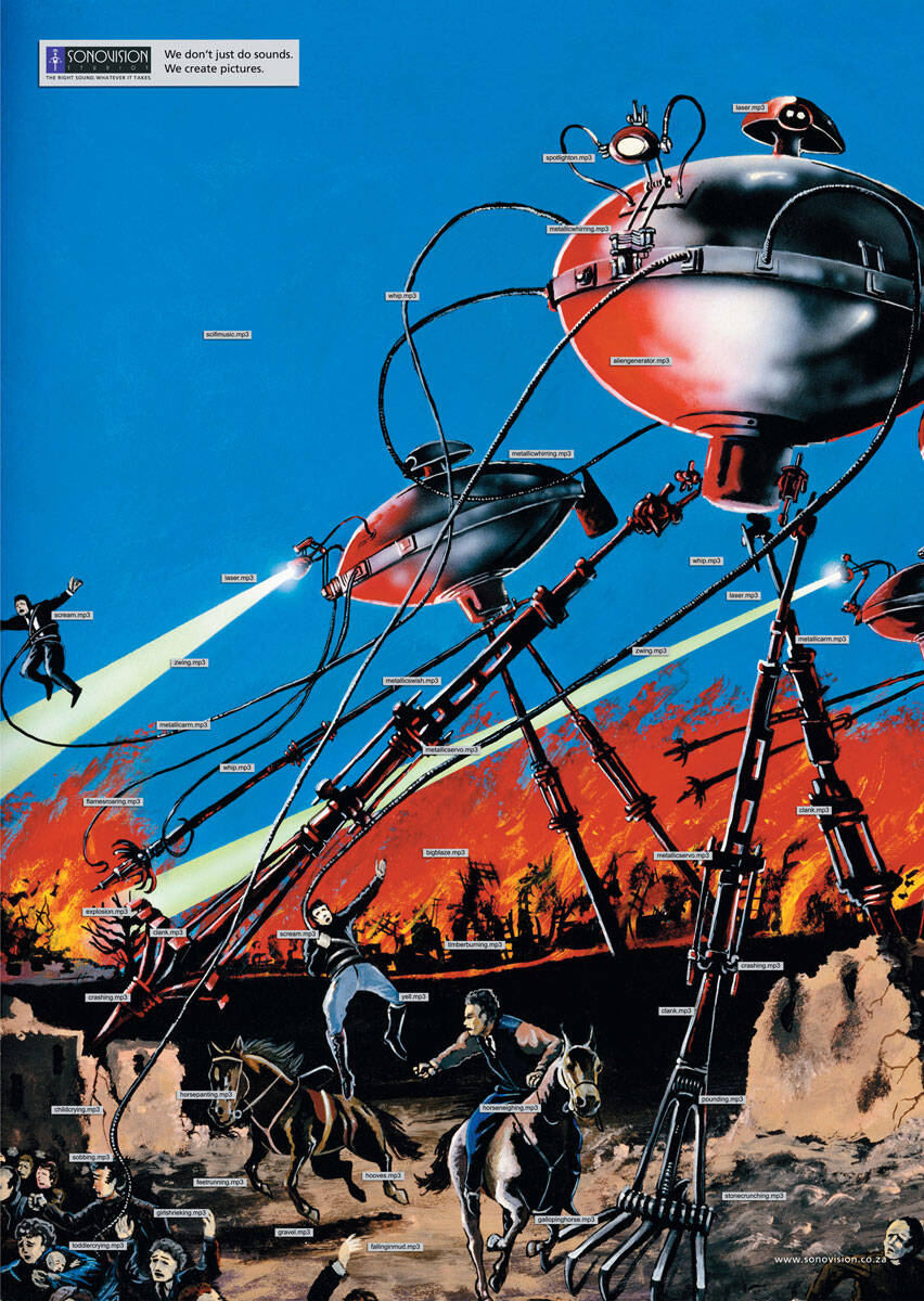 This professional campaign titled 'War of the Worlds, Cavalry, Boxer' was published in South Africa in January, 2008. It was created for the brand: Sonovision, by ad agency: FCB. This Print medium campaign is related to the Professional Services industry and contains 3 media assets. It was submitted over 17 years ago.
