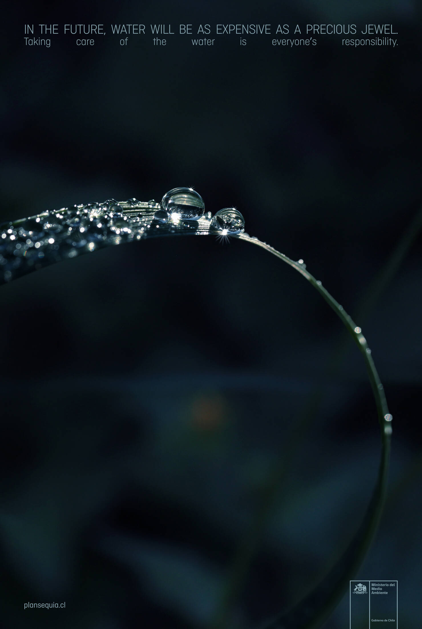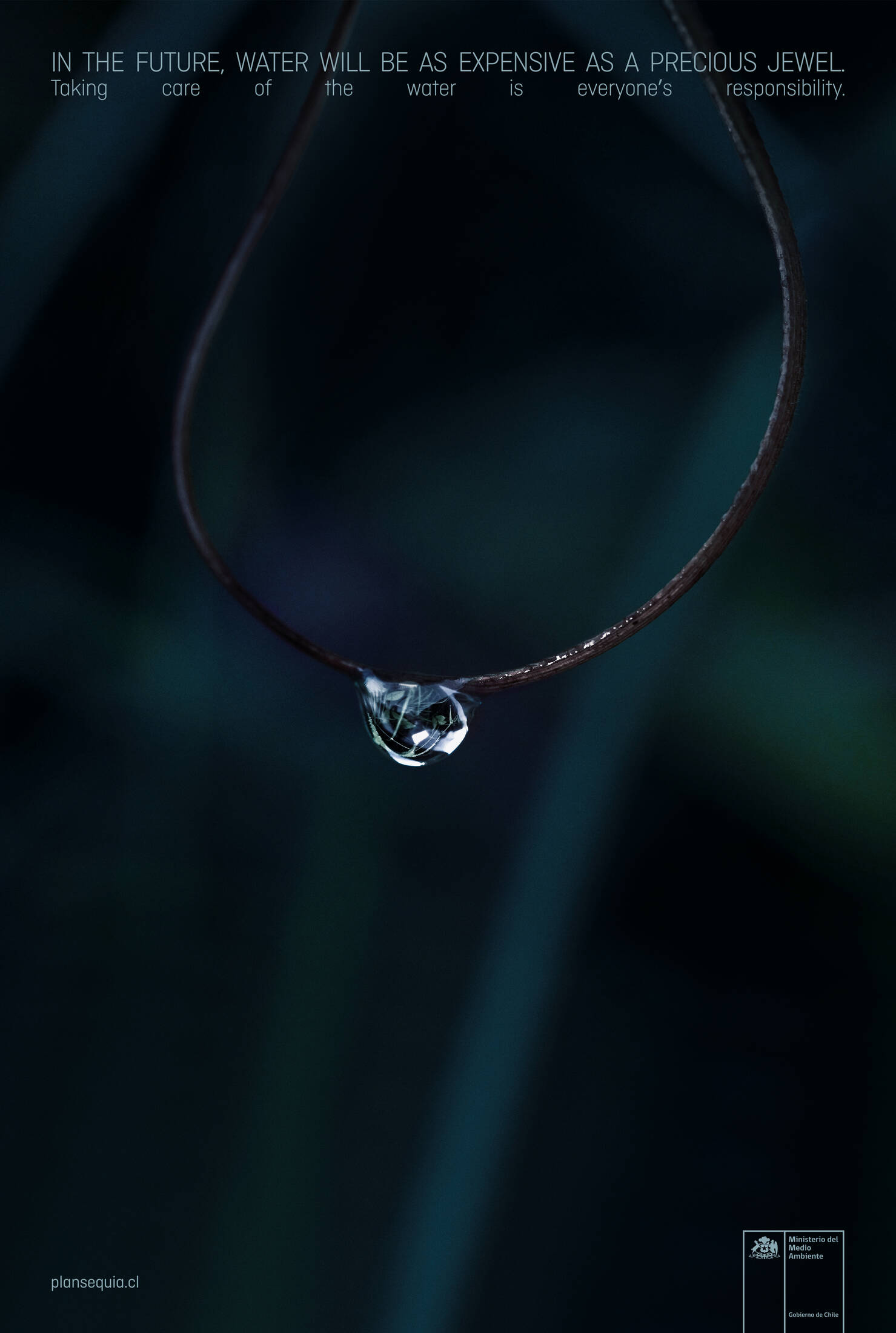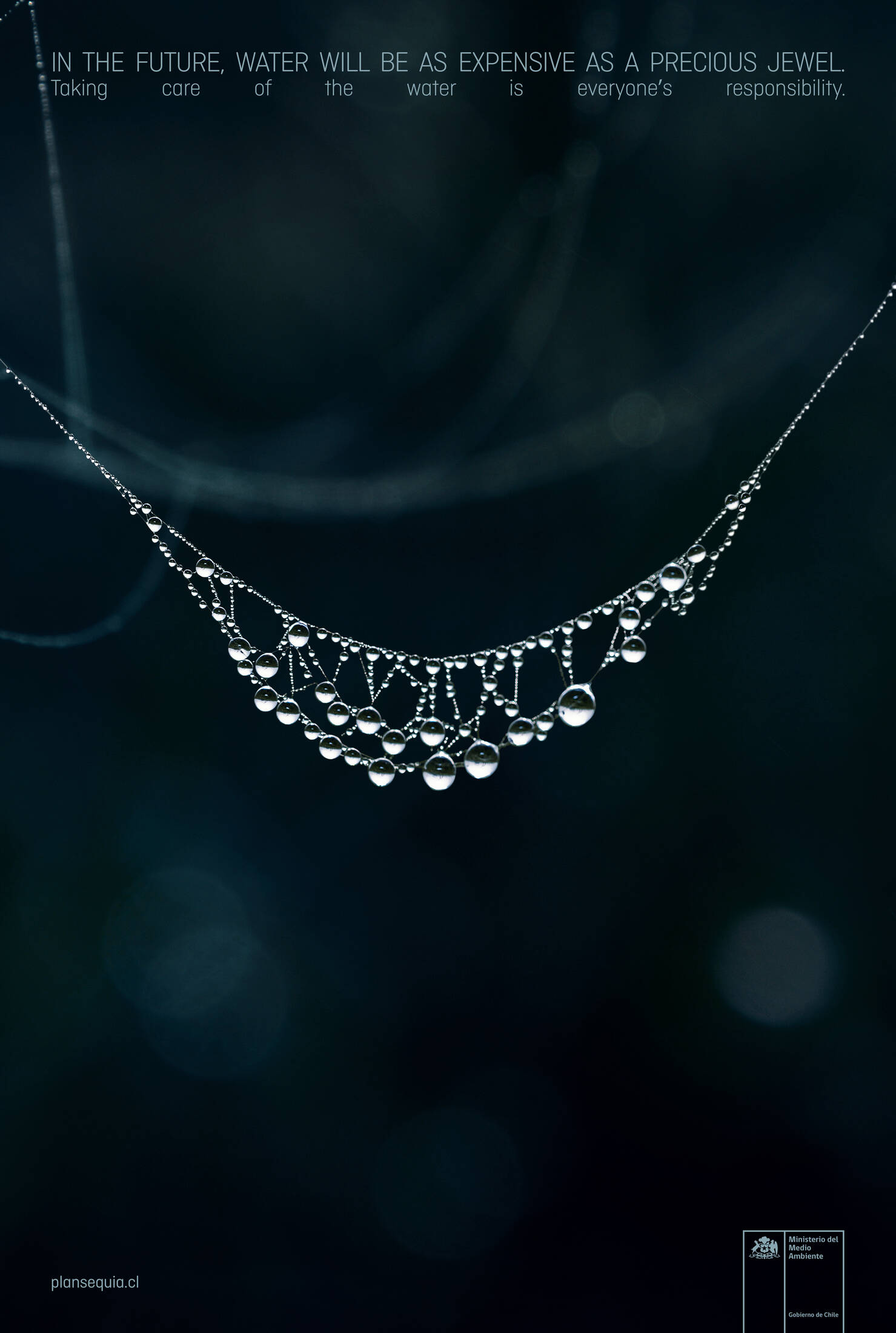 This professional campaign titled 'Water Jewelry • Gobierno de Chile' was published in Chile in January, 2023. It was created for the brand: Gobierno de Chile, by ad agency: BBDO. This Print medium campaign is related to the Public Utility industry and contains 4 media assets. It was submitted over 2 years ago.