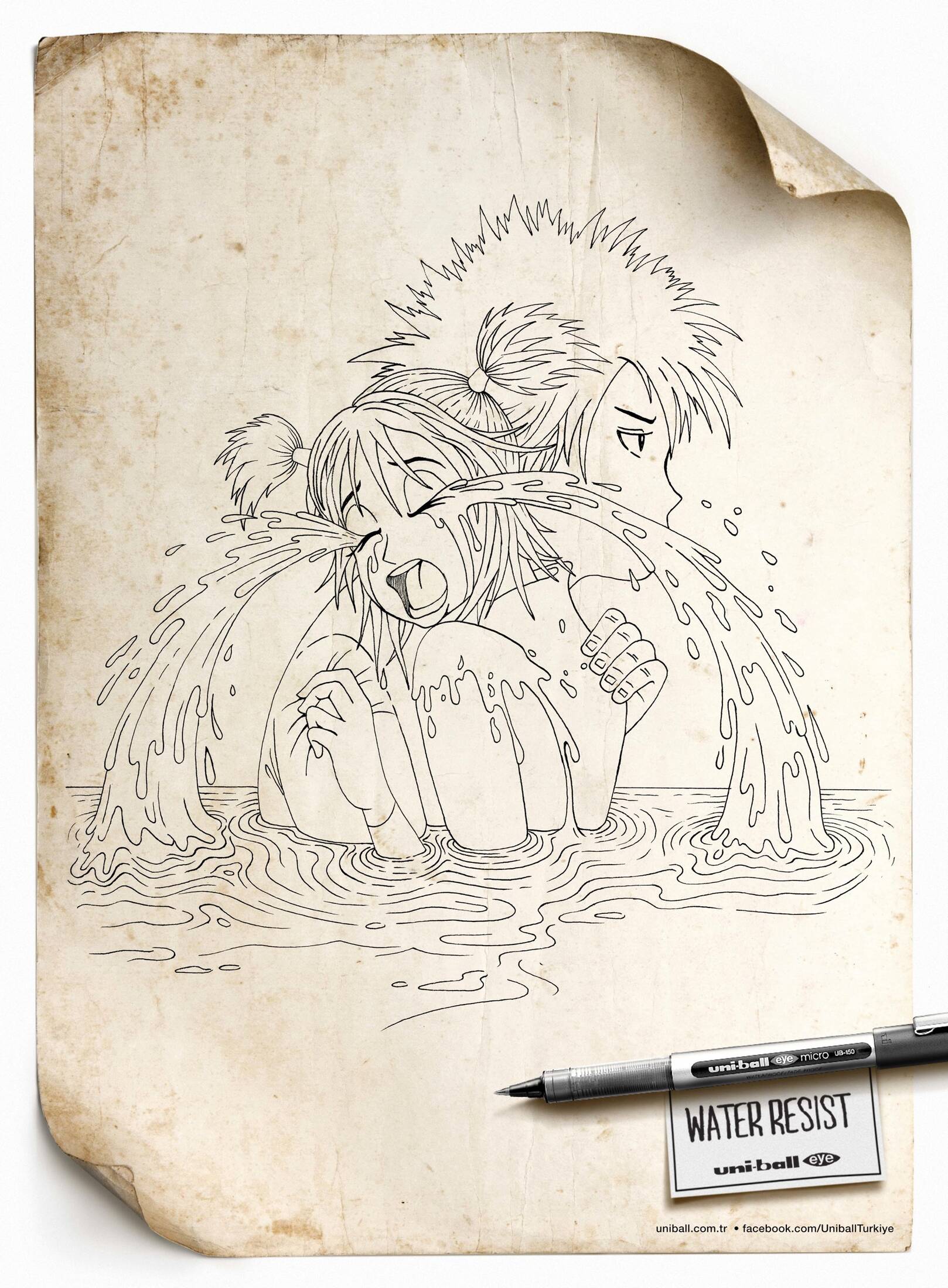 This professional campaign titled 'Water resist' was published in Turkey in April, 2014. It was created for the brand: Uniball, by ad agency: UltraRpm. This Print medium campaign is related to the House, Garden industry and contains 1 media asset. It was submitted over 11 years ago.