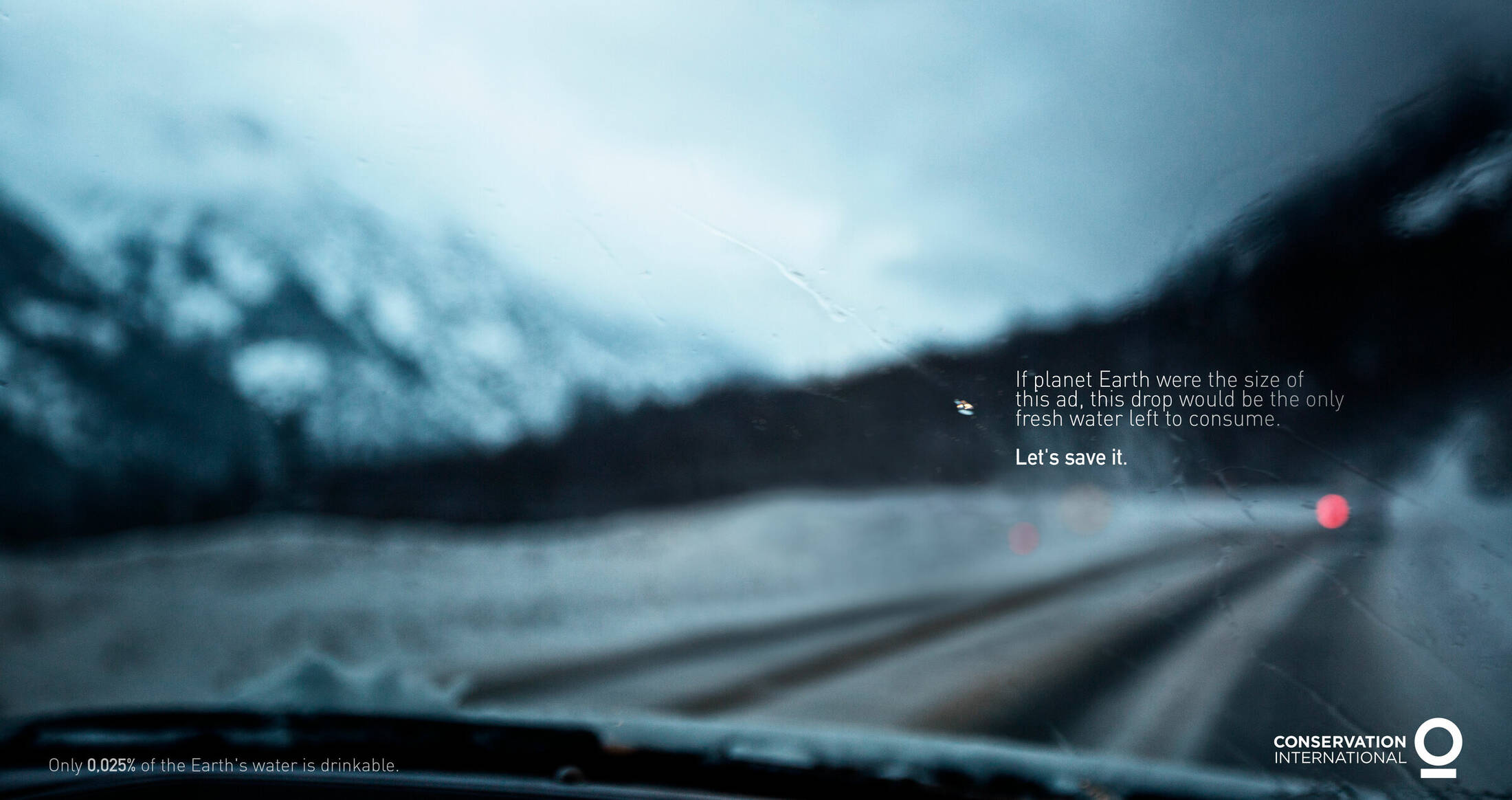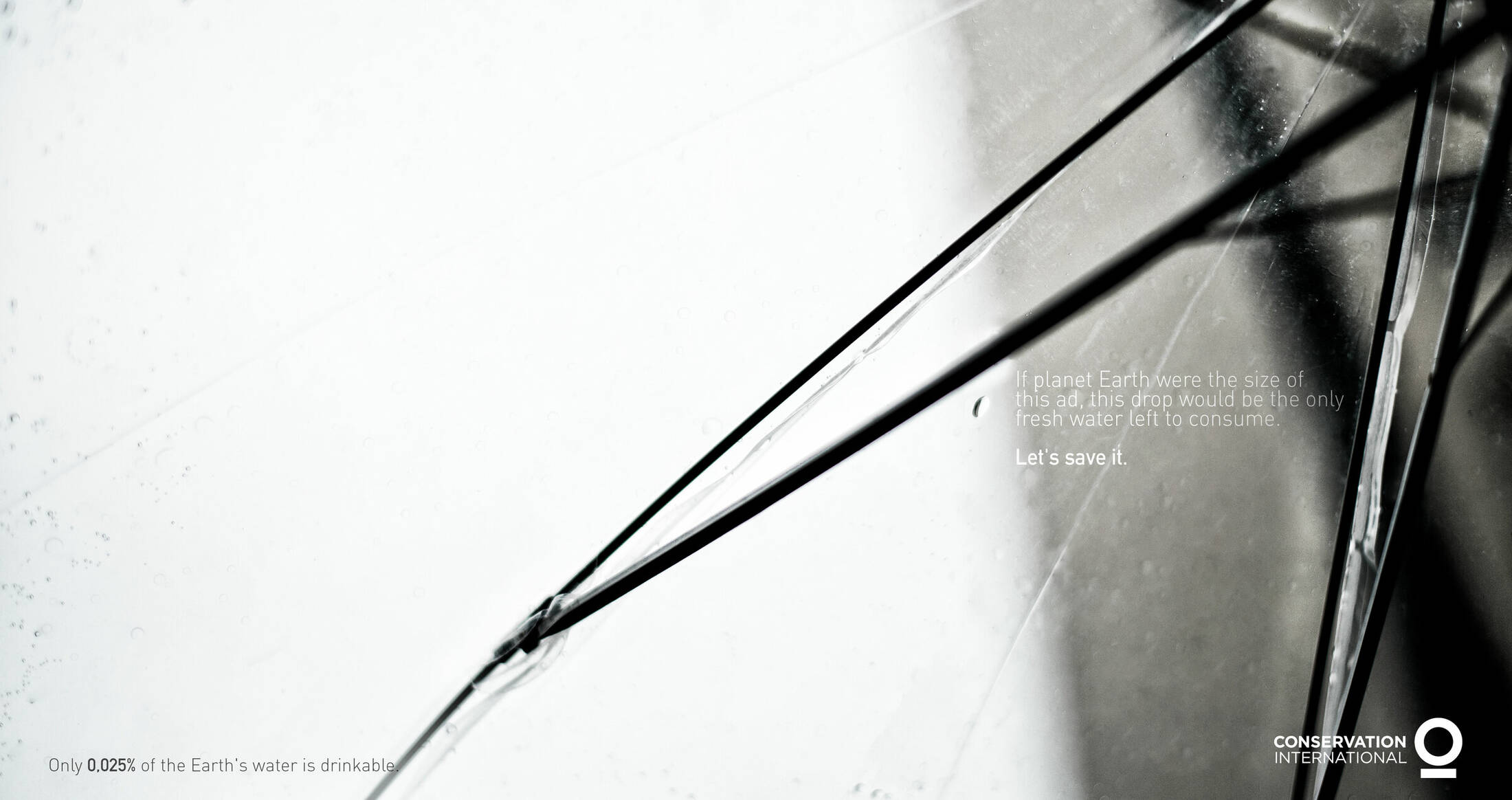 We live in the blue planet but not all of its water is drinkable, in fact, is far much less than one would think... just 0.025% it’s drinking water, that’s why we’ve decided to represent this finding in a print that was direct, shocking and that everyone could understand in order to raise awareness about the precious water we waste.