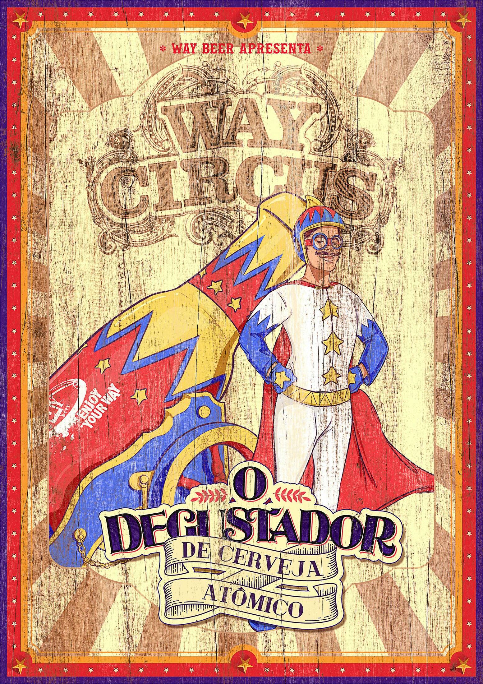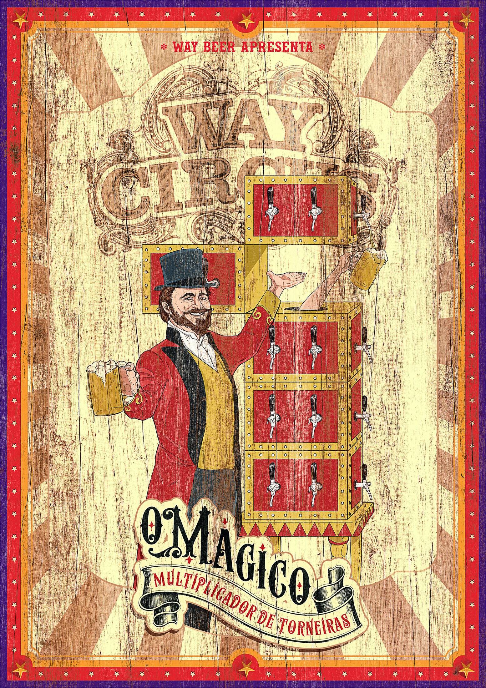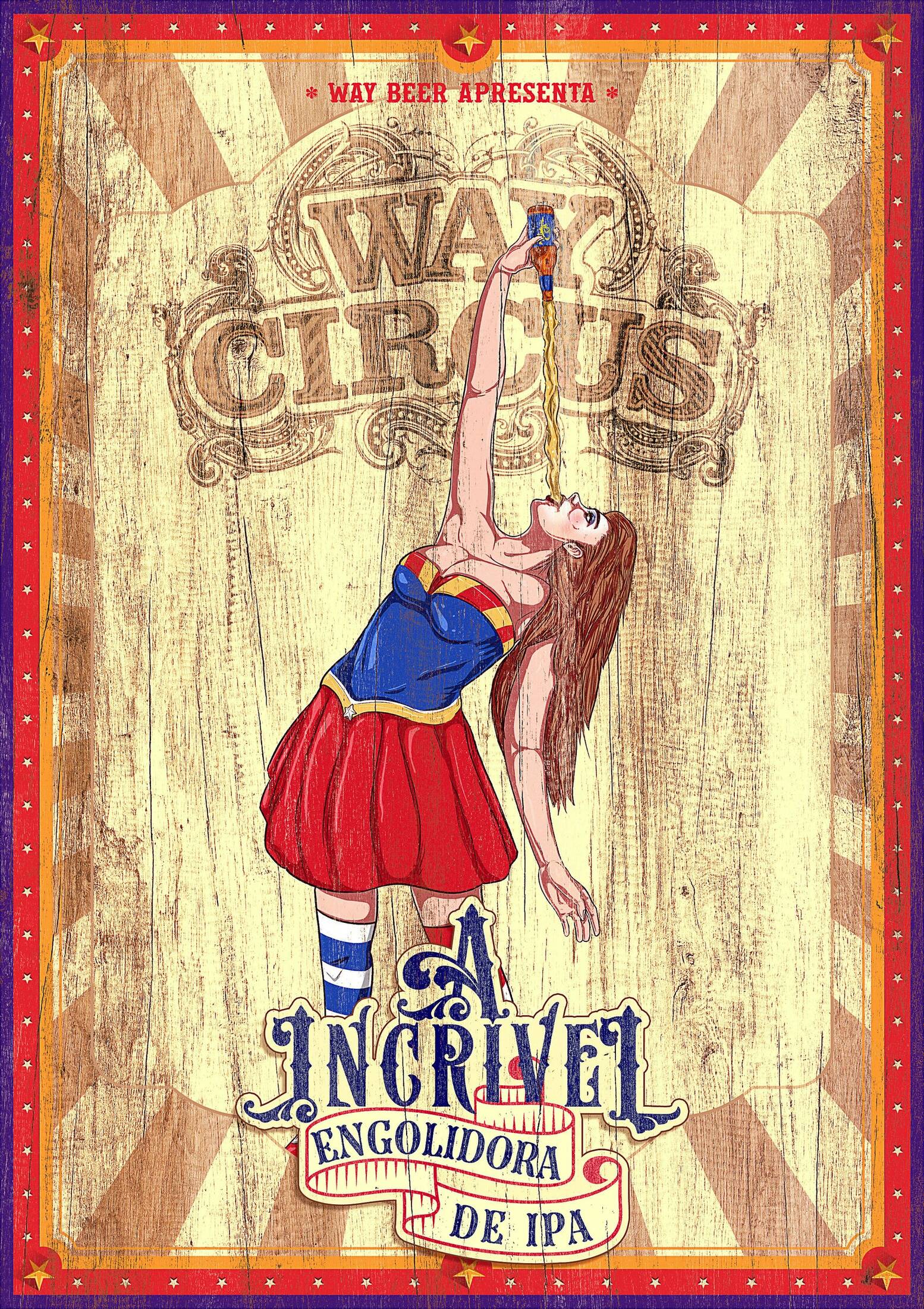 Campaign for a beer event featuring circus attractions, presented by Way Beer.