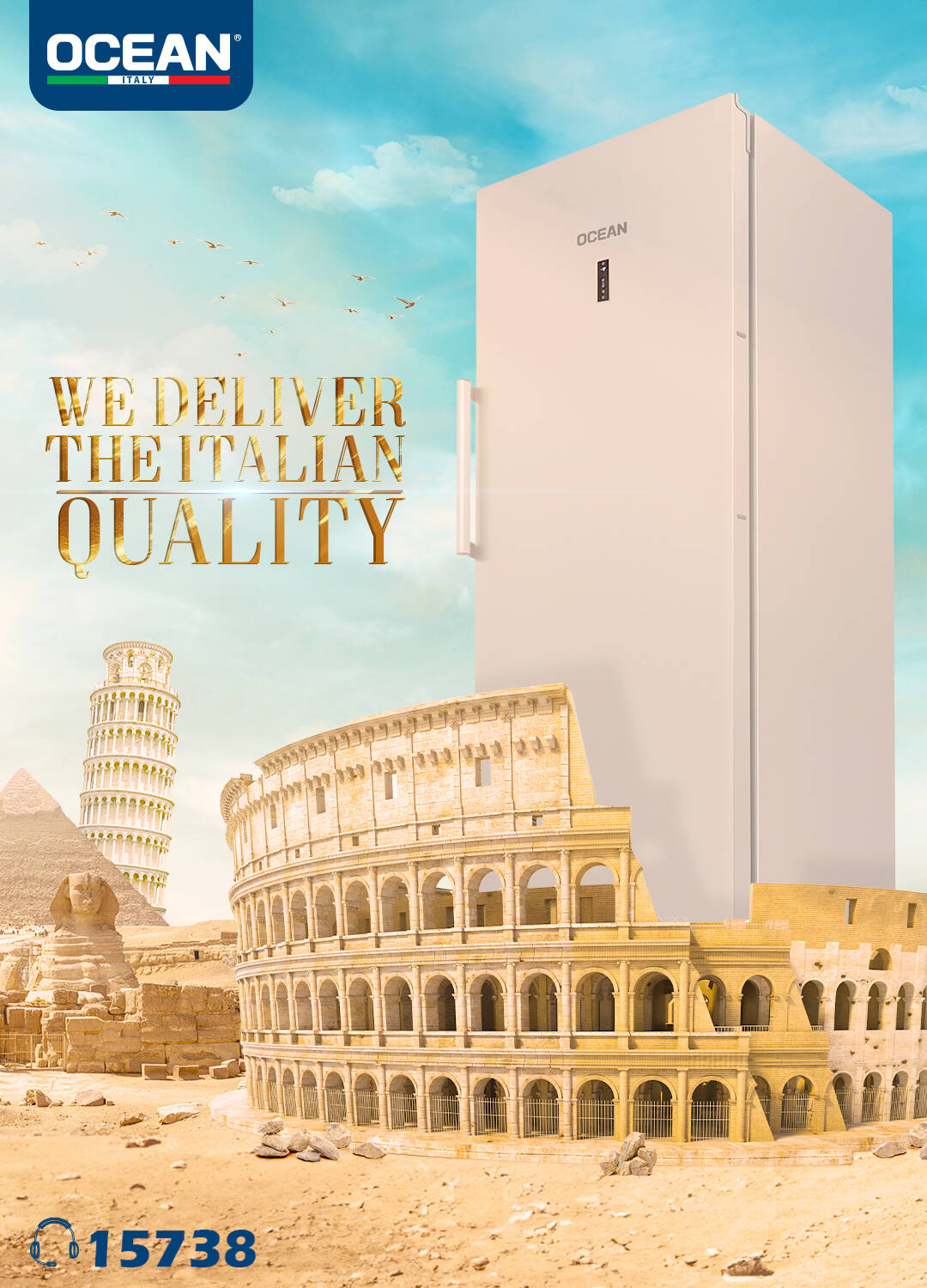 This professional campaign titled ' We Deliver The Italian Quality poster' was published in Egypt in September, 2024. It was created for the brand: ocean home appliances, by ad agency: PAMOJA. This Digital, OOH Outdoor, and Print media campaign is related to the Electronic Devices and Electronics, Technology industries and contains 2 media assets. It was submitted about 1 year ago by SR. Graphic Designer: Hussien Ahmed Elsaied.