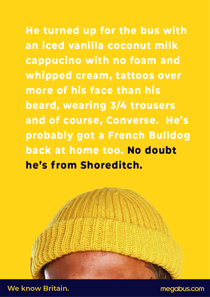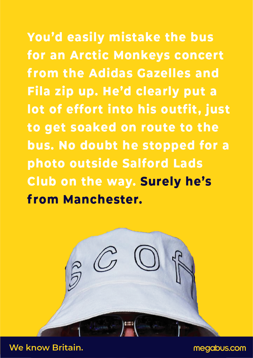 Megabus links more than 90 locations nationwide and carries more than 4 million passengers every year. Their bus drivers see every passenger that gets on and off the bus, giving them an honest stereotype of people around the UK.