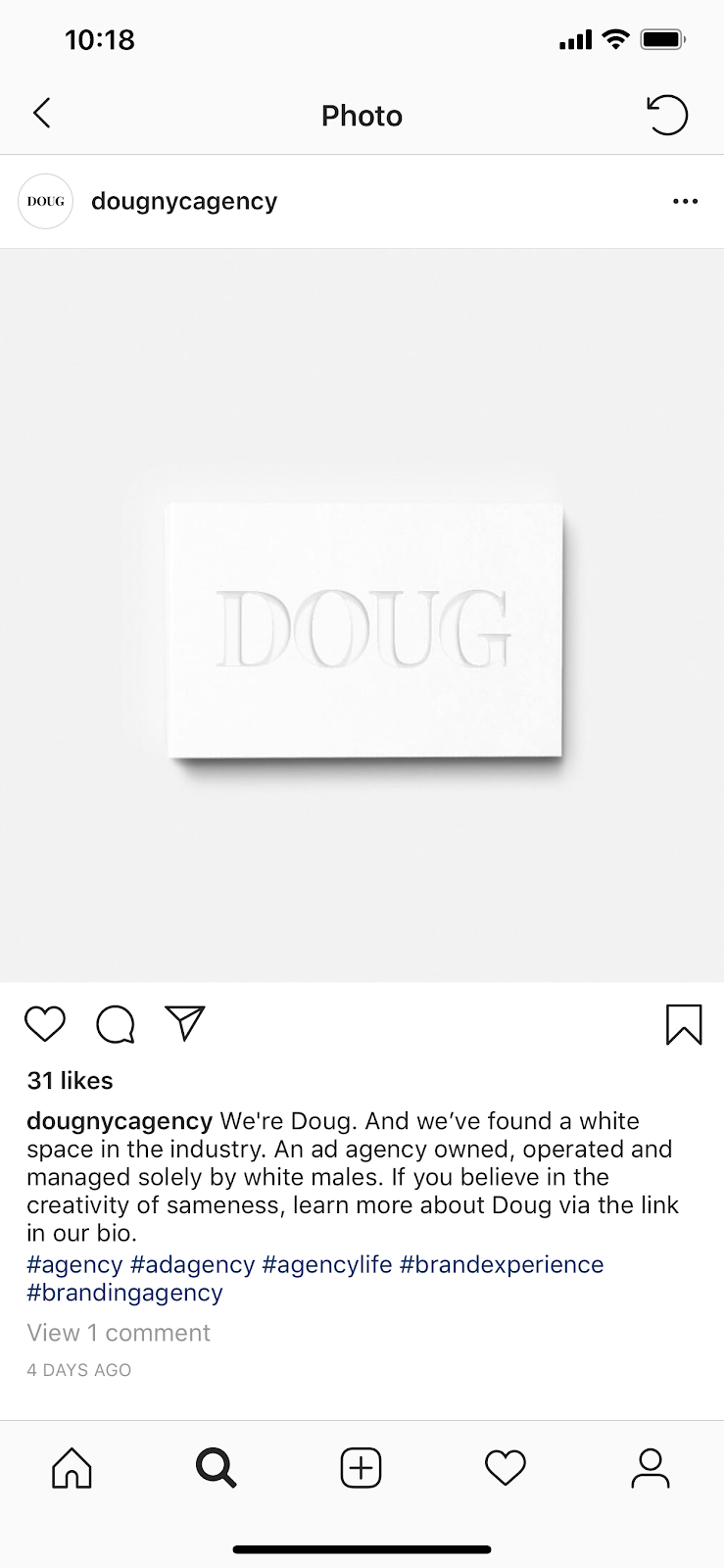 Sound backwards and...well, stupid? Doug was created as a parody by L.A. independent agency Dailey, which, since its 2017 buyback from IPG, has consciously tried to hire and promote for diversity.